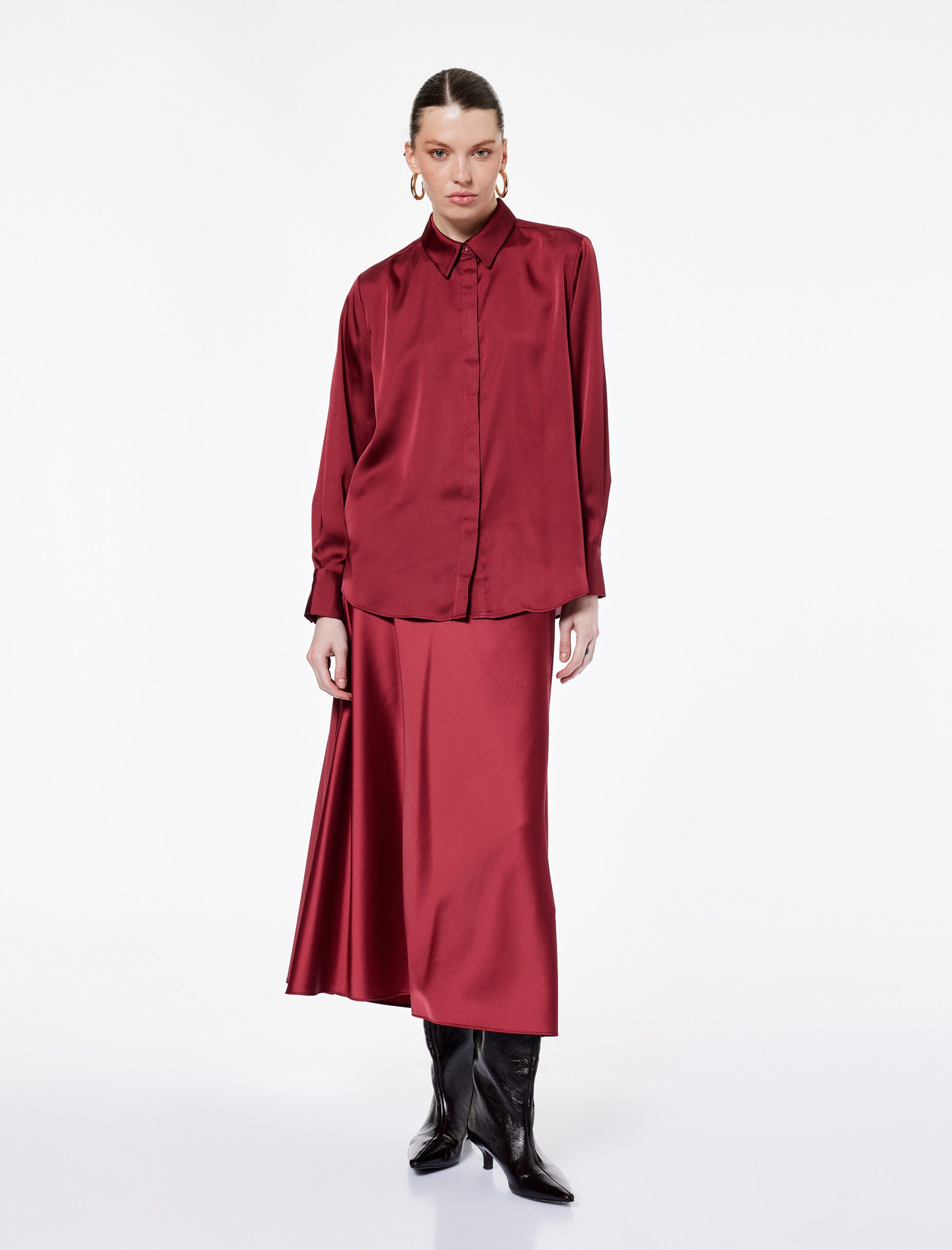 يمكنك تنسيق القميص الساتان مع بناطيل الكريب والكعب العالي للحصول على مظهر مثالي للمكتب. لمظهر أكثر عصرية، قم بتنسيقه مع الجينز والأحذية المريحة لدمج الأناقة مع الراحة. أكملي إطلالتك بمجوهرات بسيطة وحقيبة أنيقة لخلق مظهر مناسب لكل من النهار والليل.