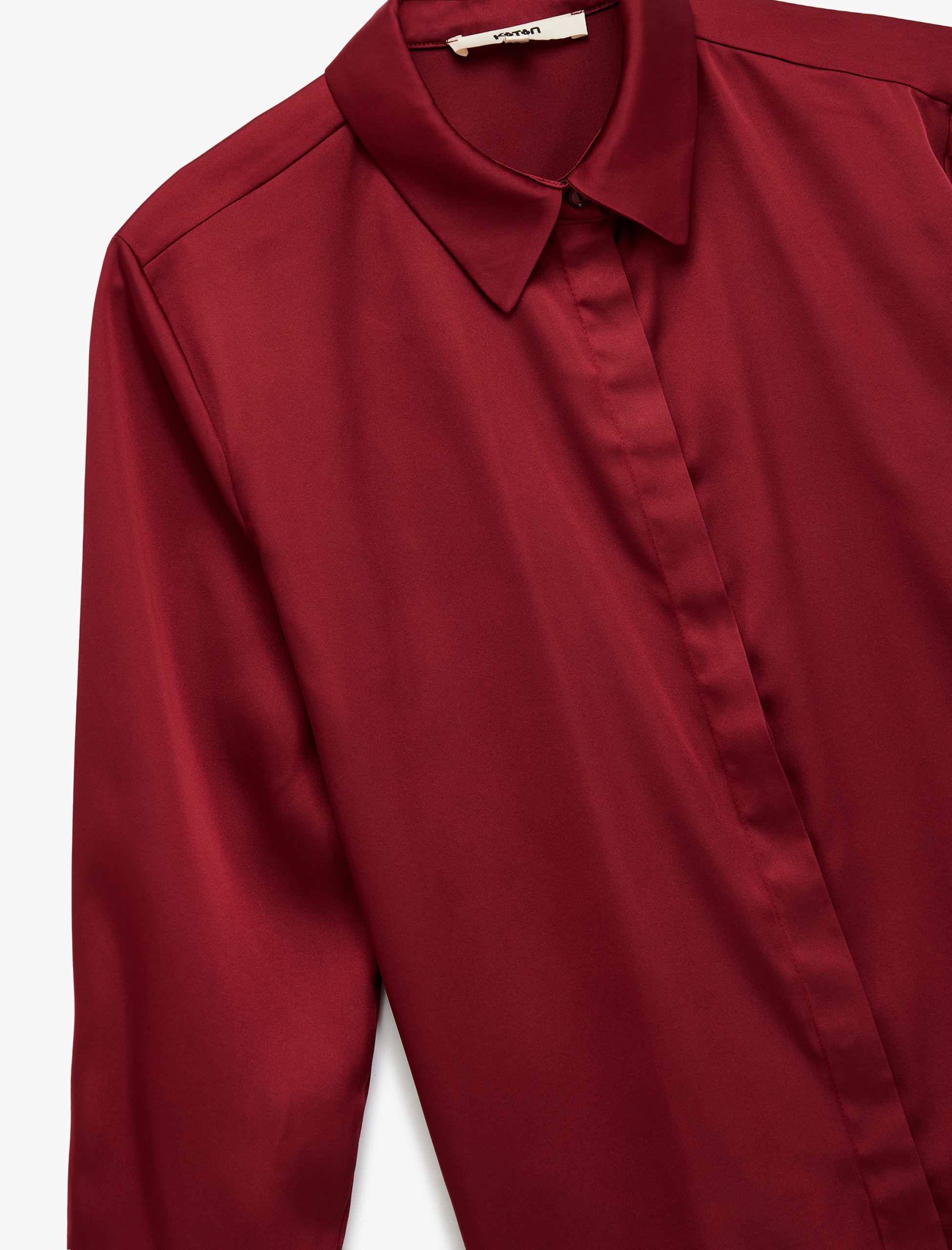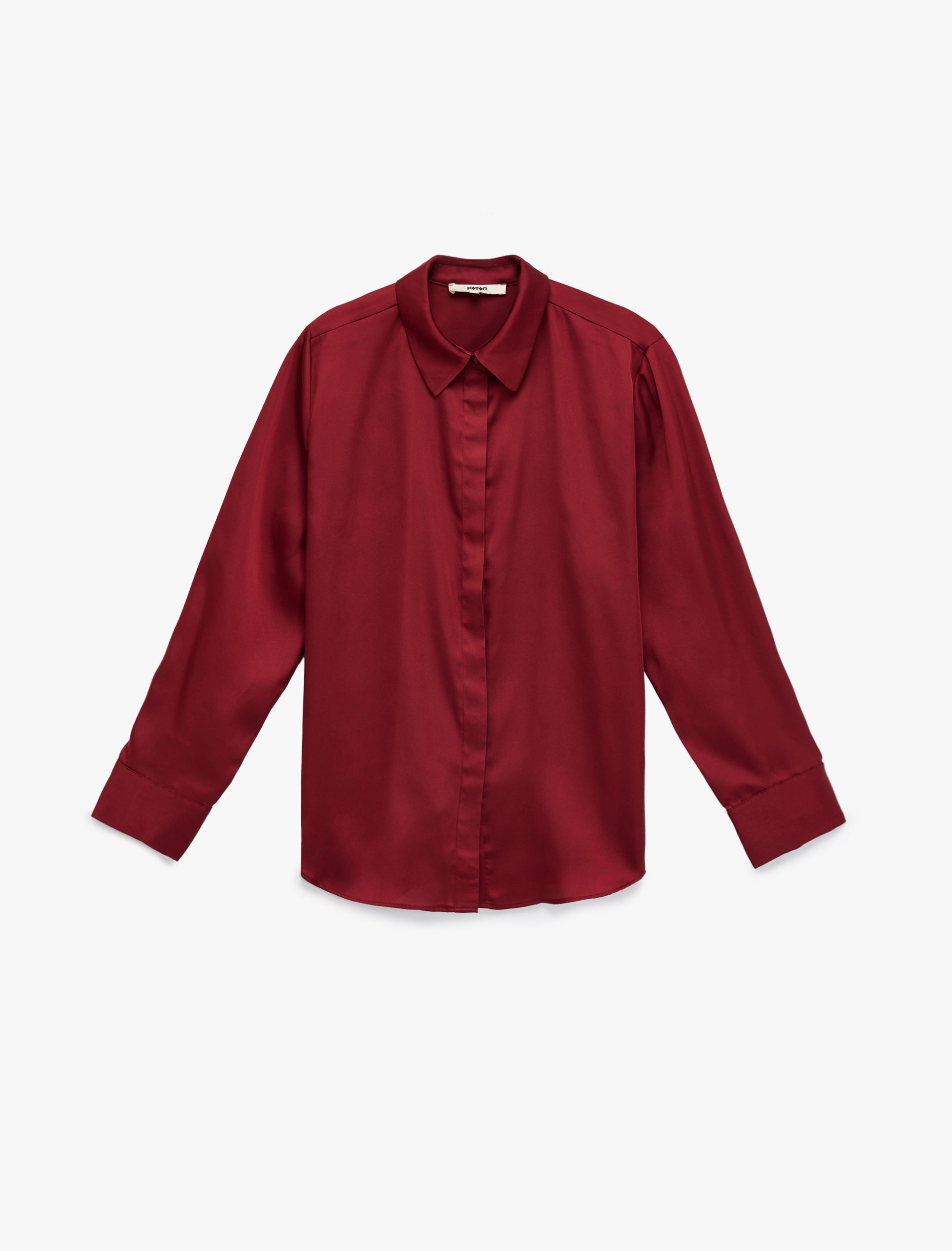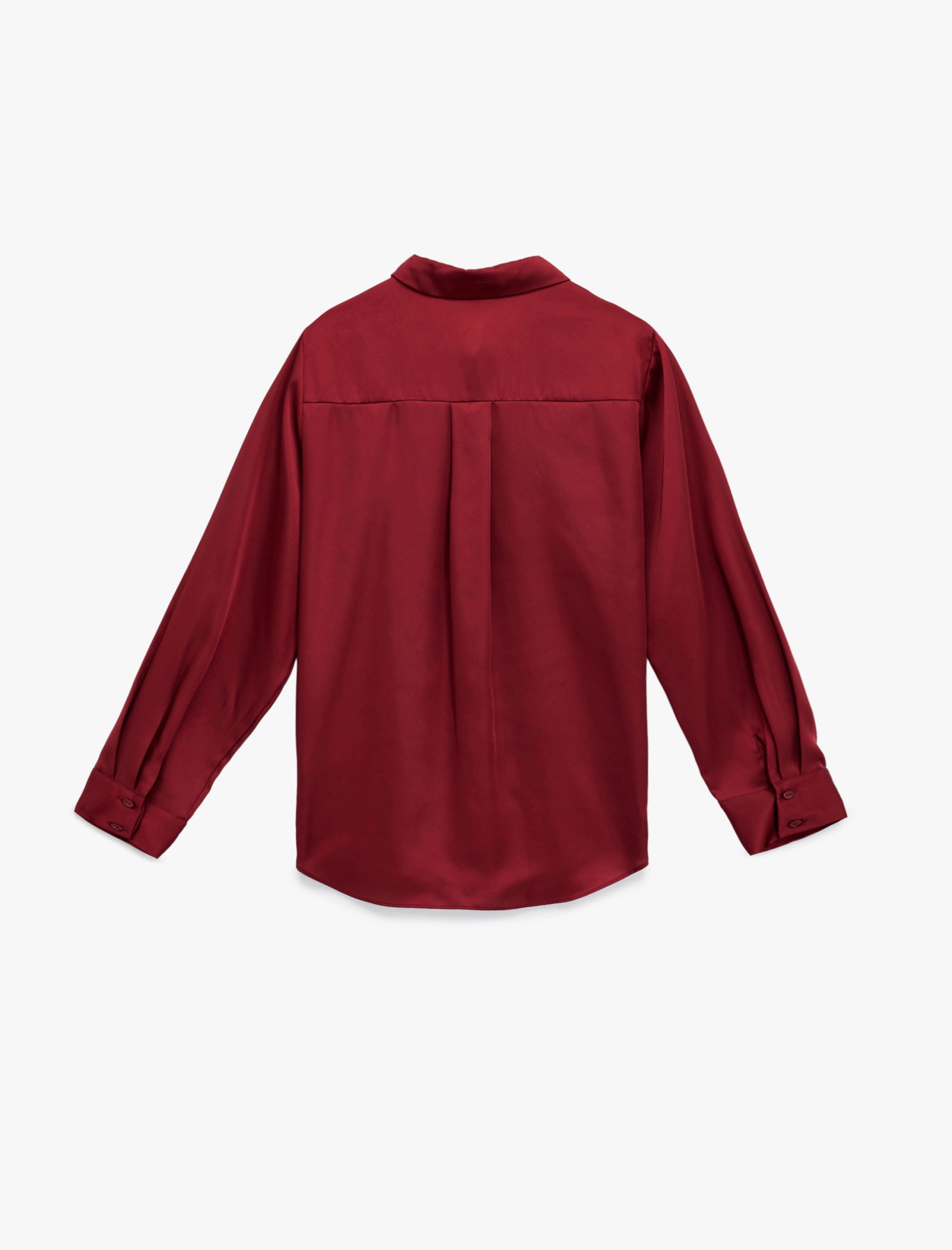 قميص ساتان طويل الأكمام بكولار كلاسيكي وتركيبة منتظمة