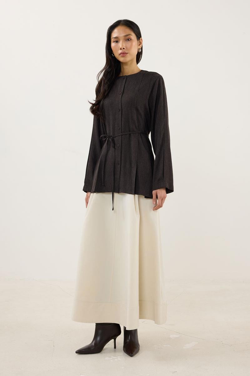 بلوزة بلون الكريمة بتفاصيل جسرية