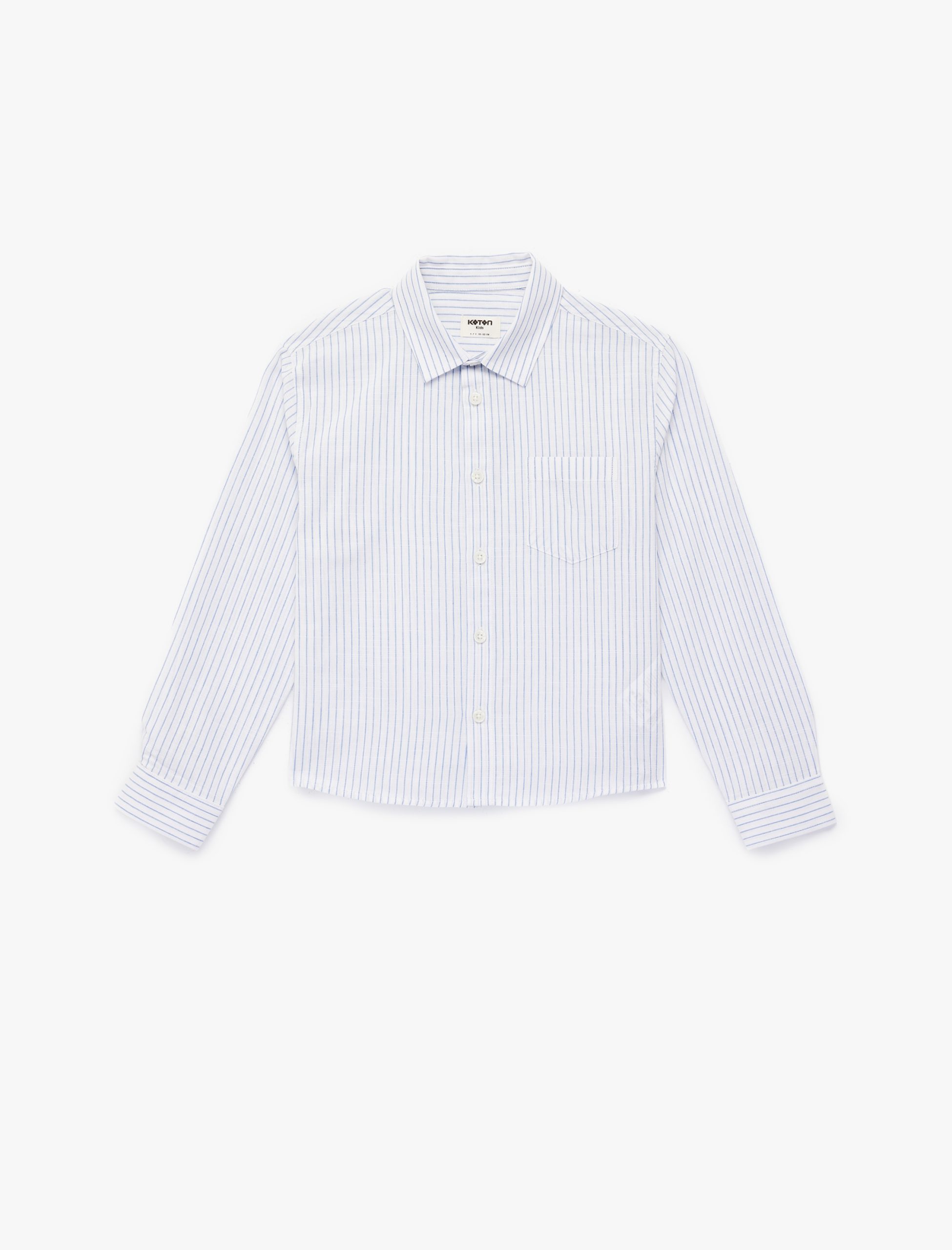 قميص صبيان قطني بأكمام طويلة وأزرار وجيب واحد مخطط