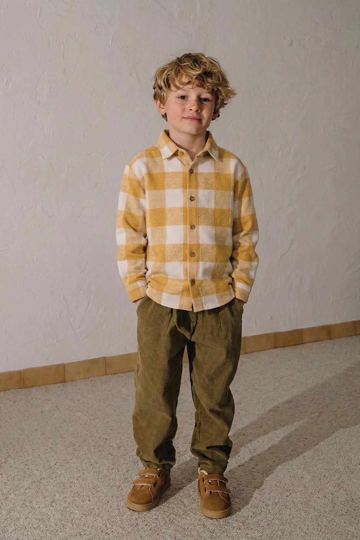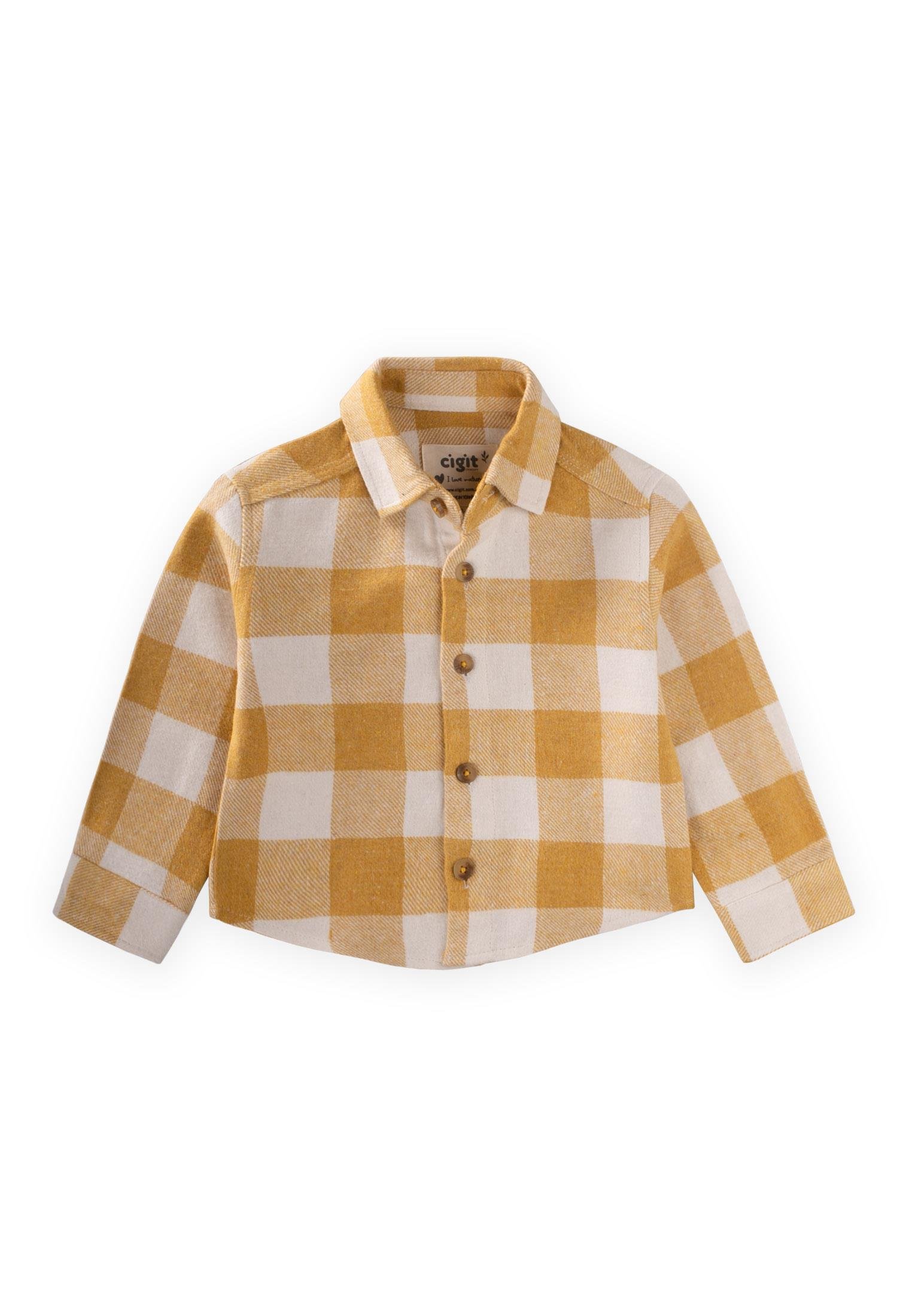 قميص فلانيل للأعمار 1-9 بتصميم مربعات بلون الخردل