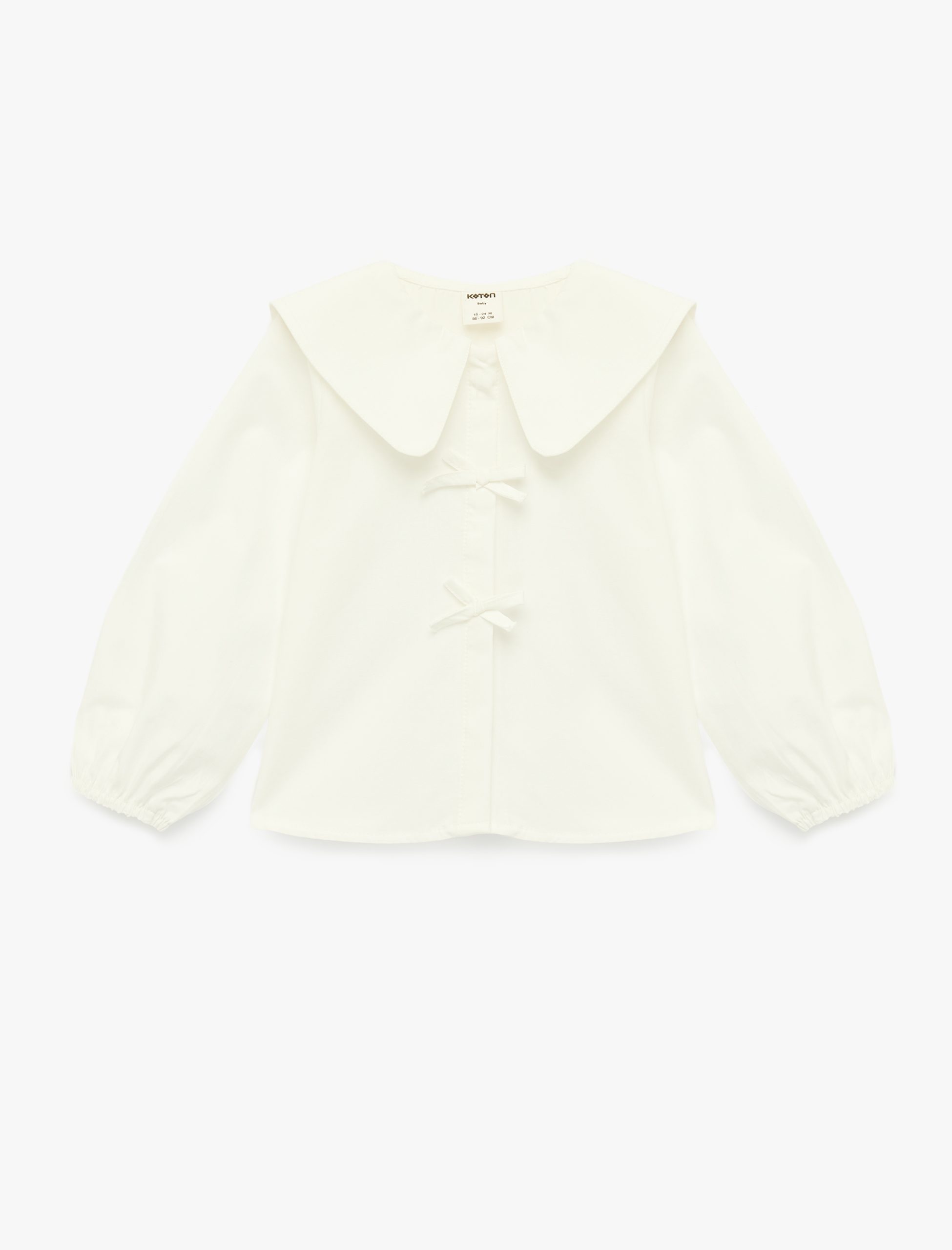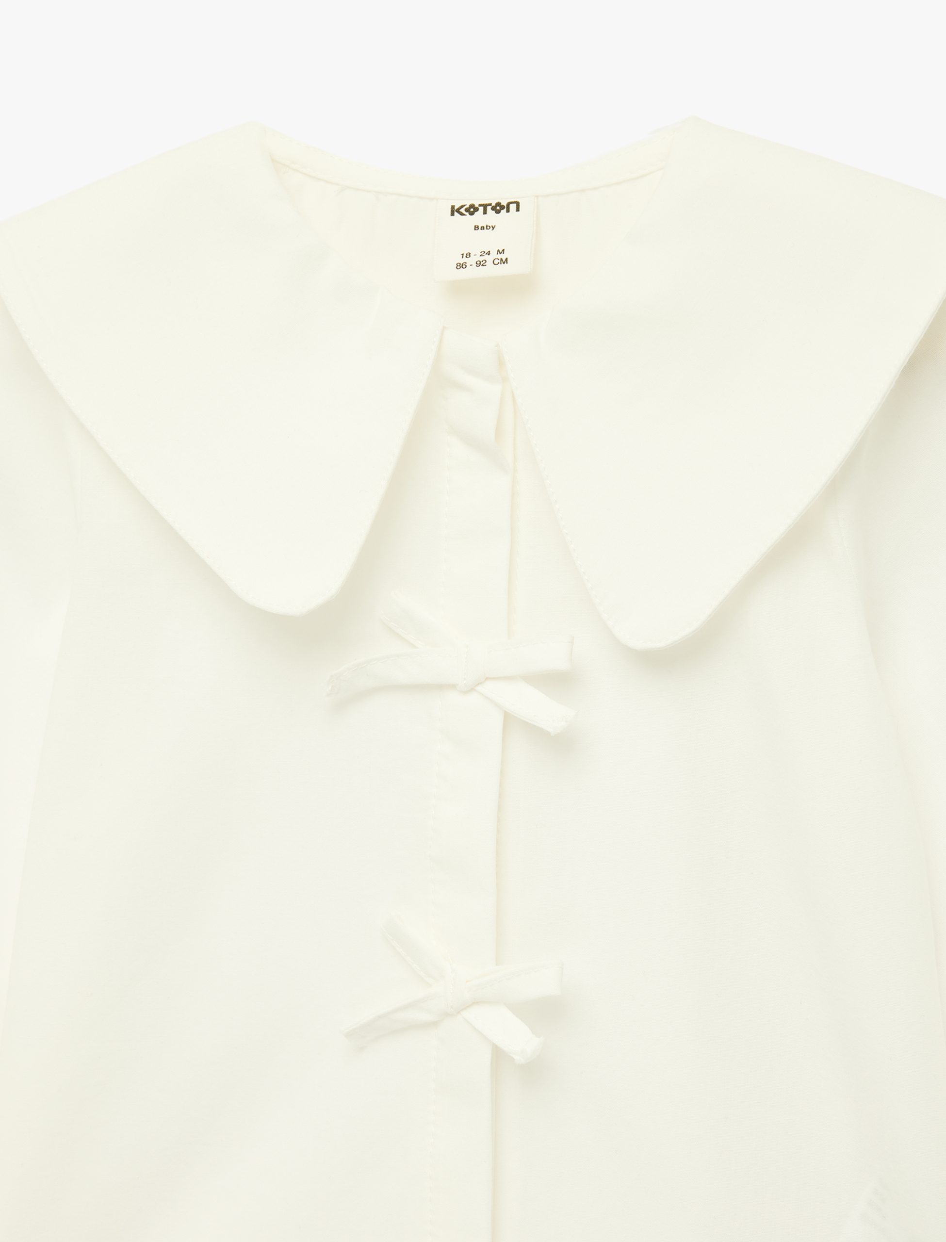 قميص قطني بأكمام طويلة ومفرط الحجم مع تفاصيل ربطة عنق وطوق أطفال