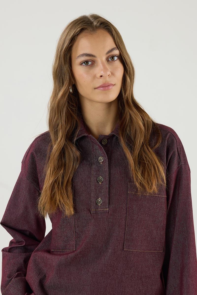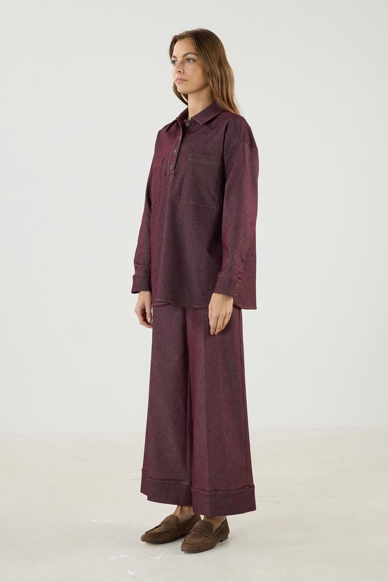قميص قطني بورجوندي بجيوب