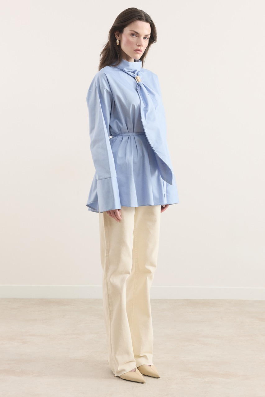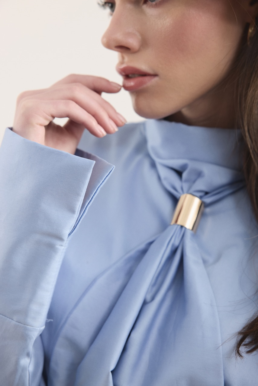 قميص قطني ساتان بتفاصيل ربطة العنق – أزرق طفولي