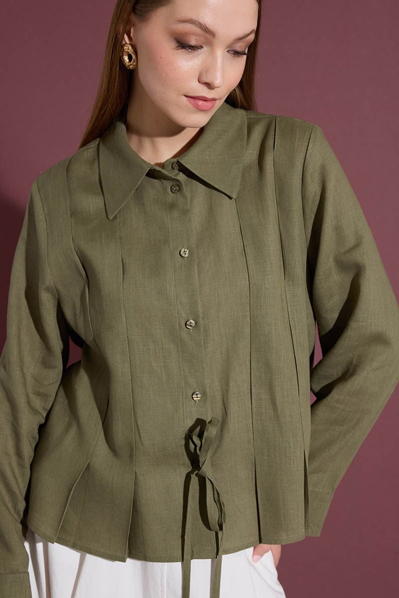قميص كيمونو مربوط بالخيوط باللون الخاكي