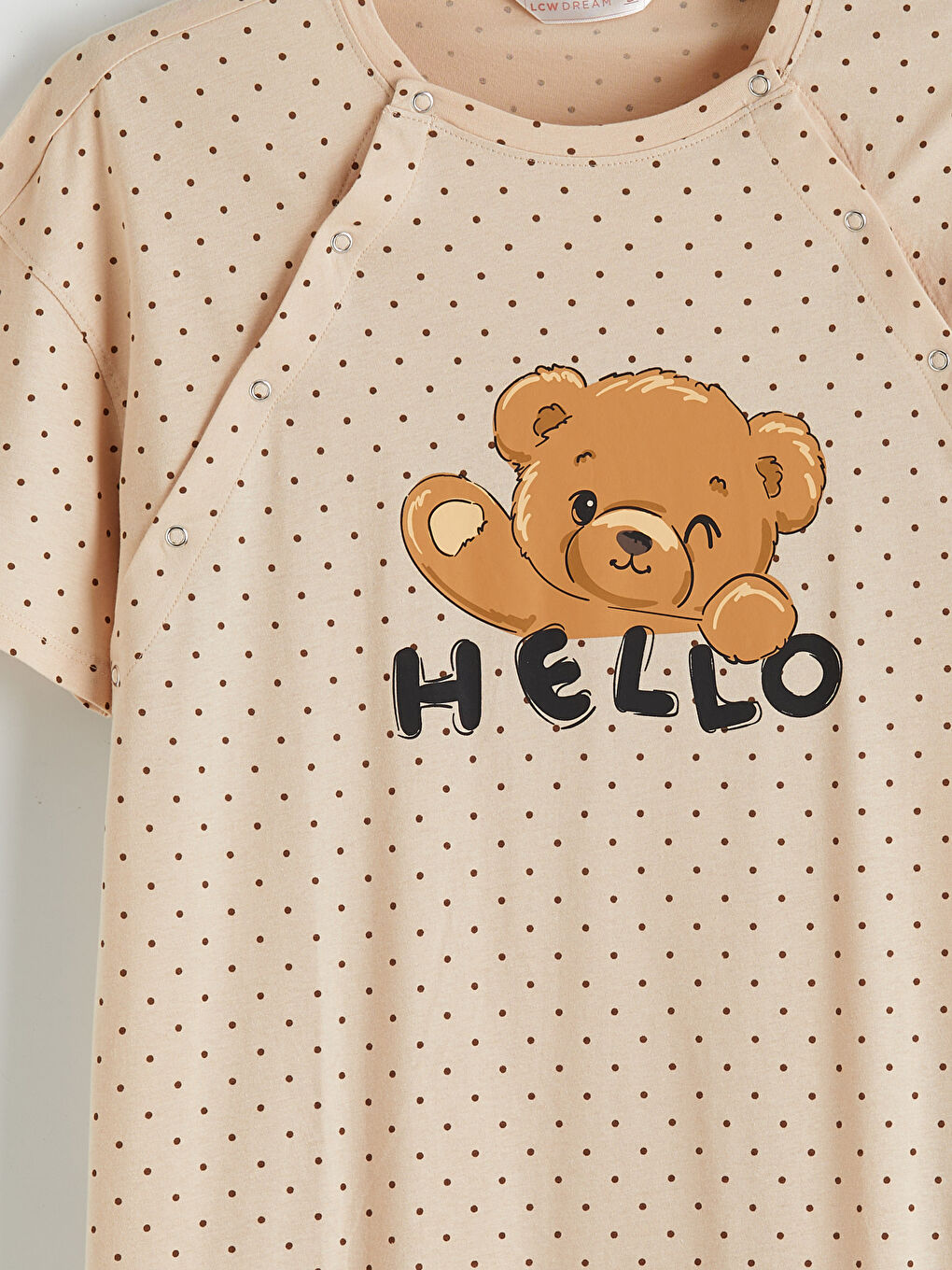 قميص نوم للحوامل بياقة الدراجة منقط باللون البيج من LCW DREAM مع خصومات حصرية، خيارات تقسيط، ومزايا الدفع عند الاستلام في LCW! تسوقي عبر الإنترنت الآن واحصلي على المنتج على باب منزلك! – S6AT69Z8-LQB