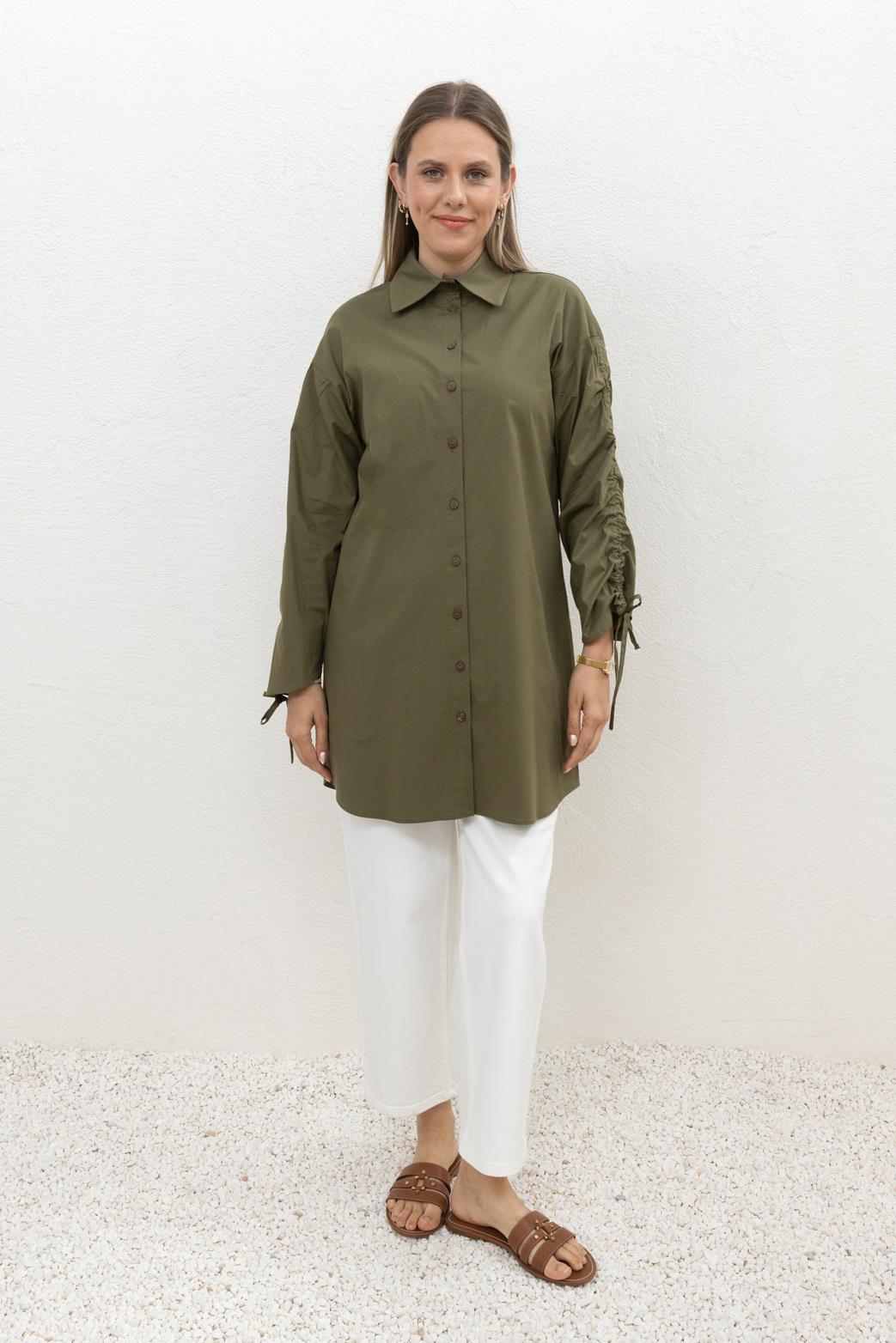 قميص هاكي بجيوب وأكمام برباط