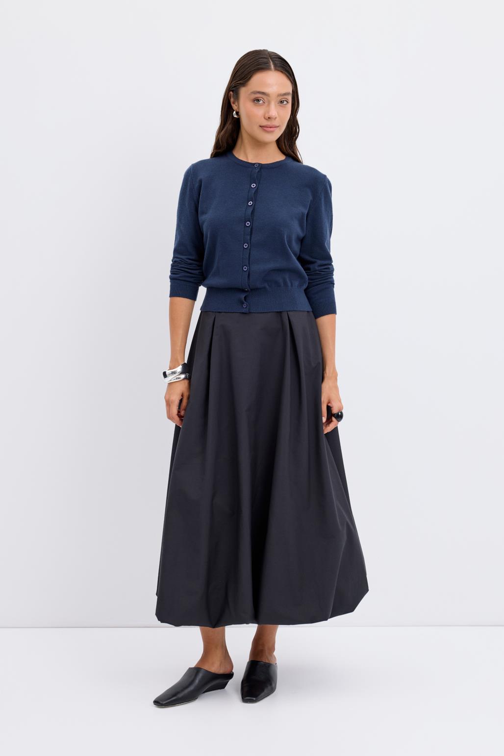 كارديجان محبوك بأزرار وياقة دائرية باللون الأزرق البحري