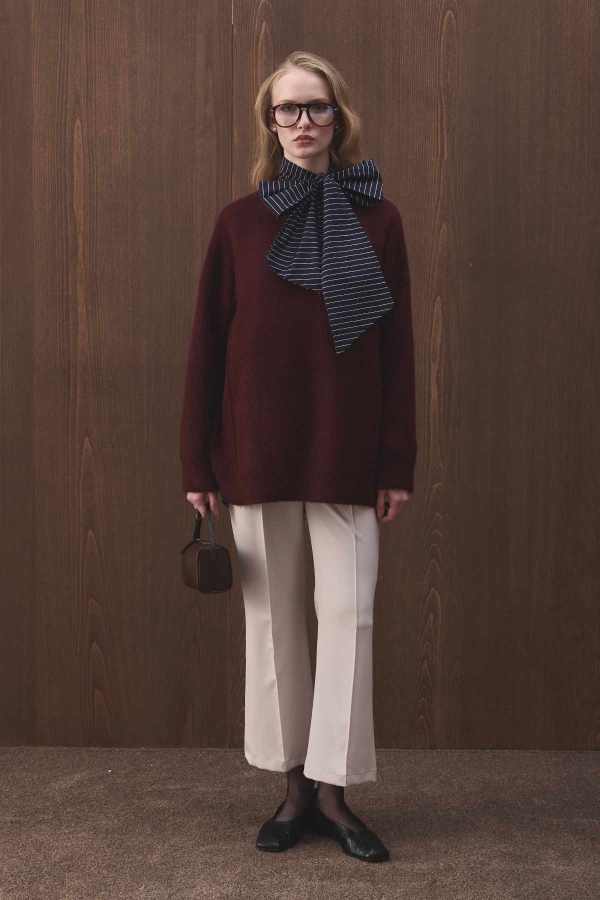 كنزة بورجوندي عالية الجودة بنسيج ناعم
