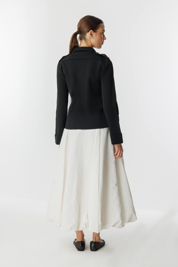 طقم بنطلون أسود بسترة من البوبلين محبوكة بتفاصيل أنيقة