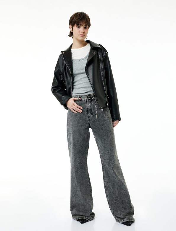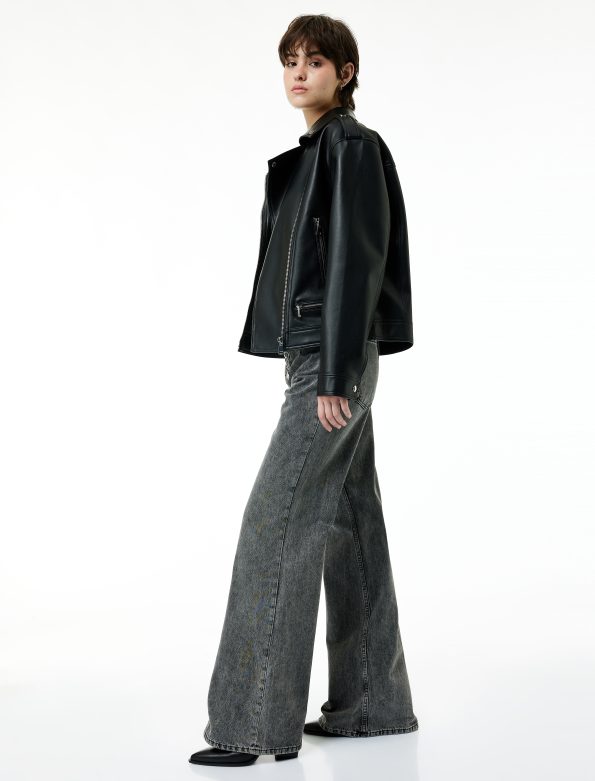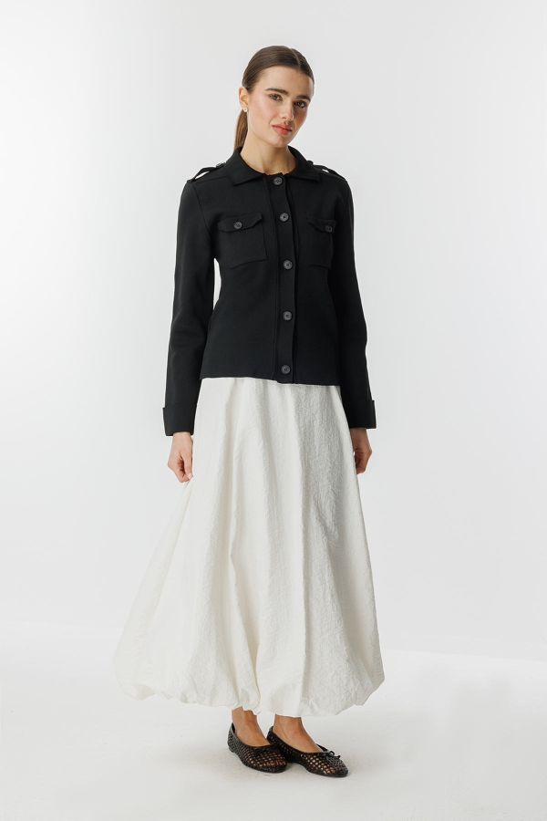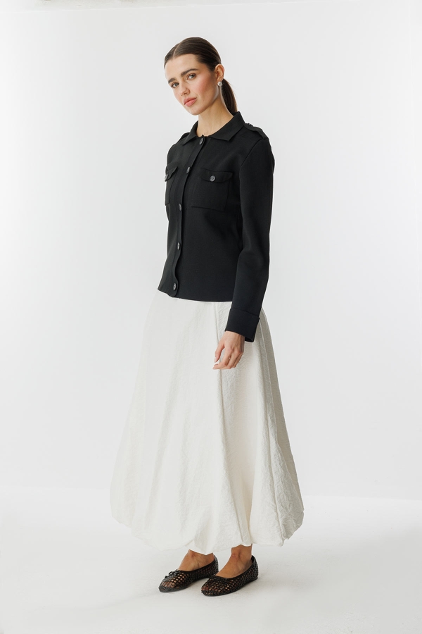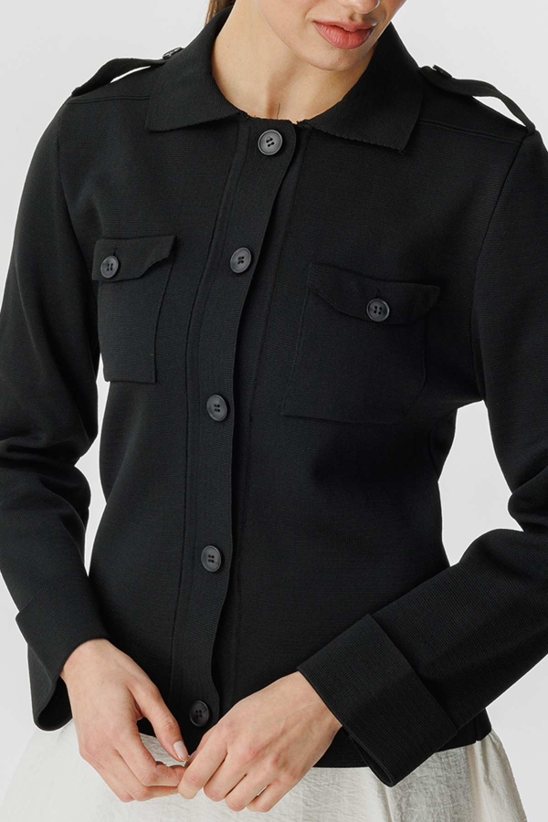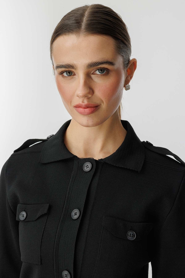 كنزة ميرسيريز قصيرة بقصة عادية، مزودة بأزرار وكتف عسكري وجيب مغطى.
