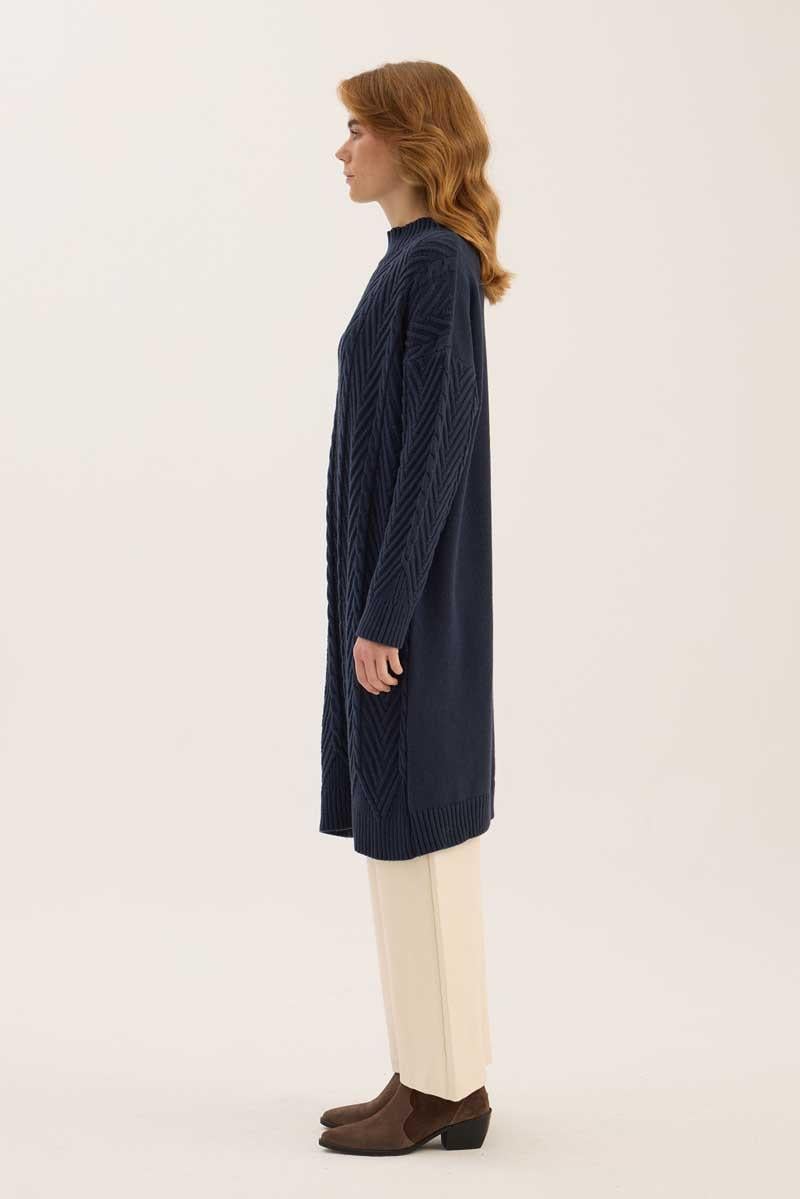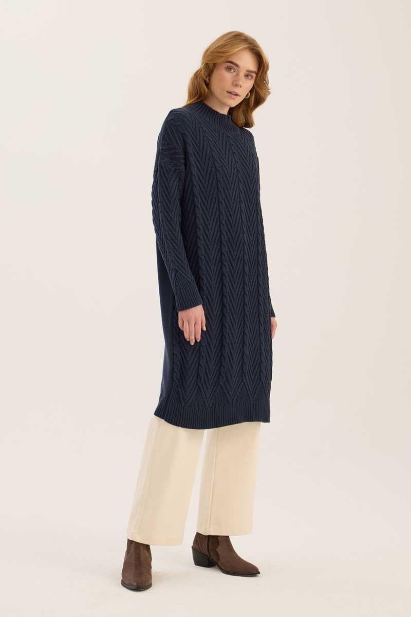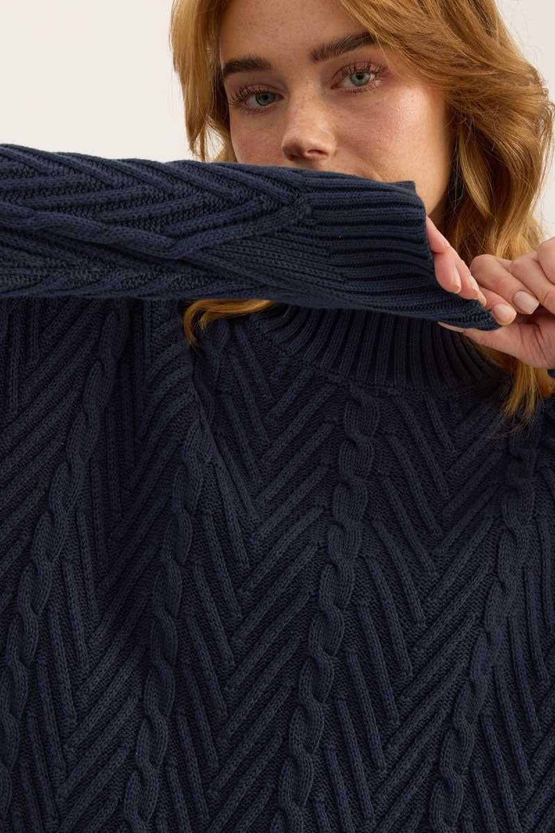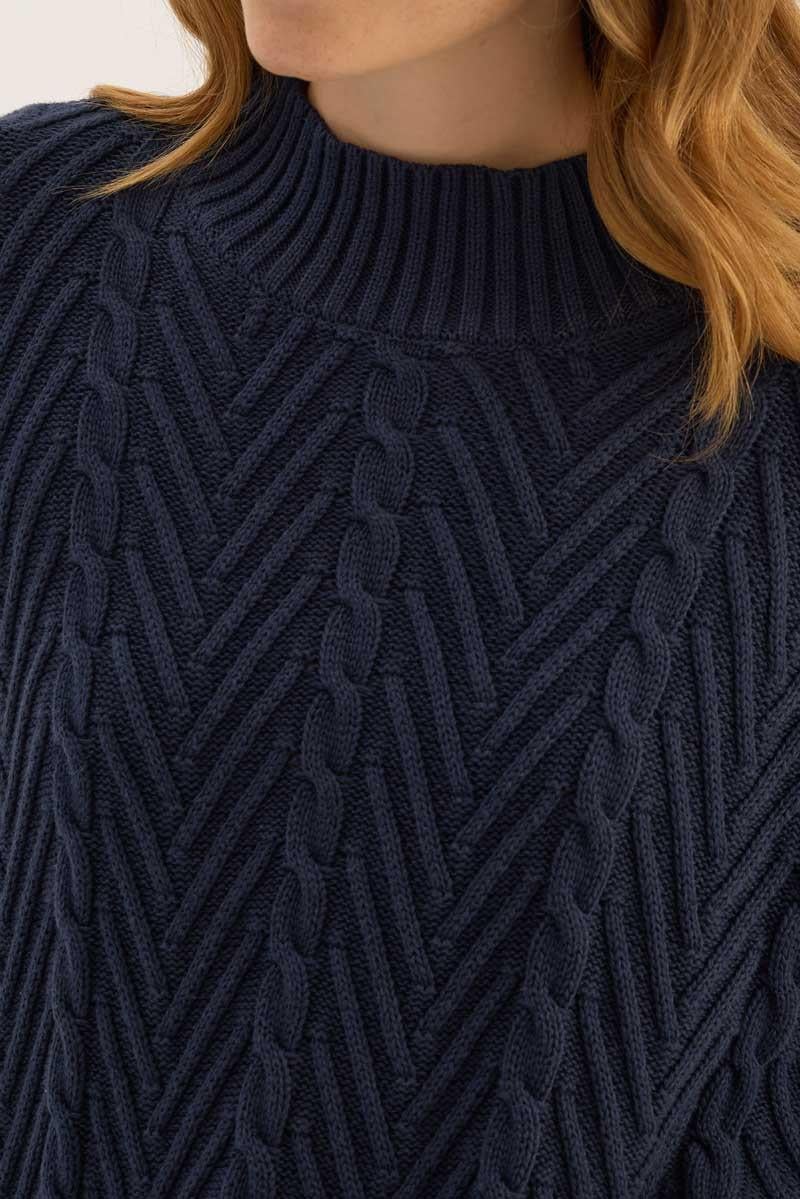 كنزة محبوكة بنمط مائل باللون الأزرق البحري