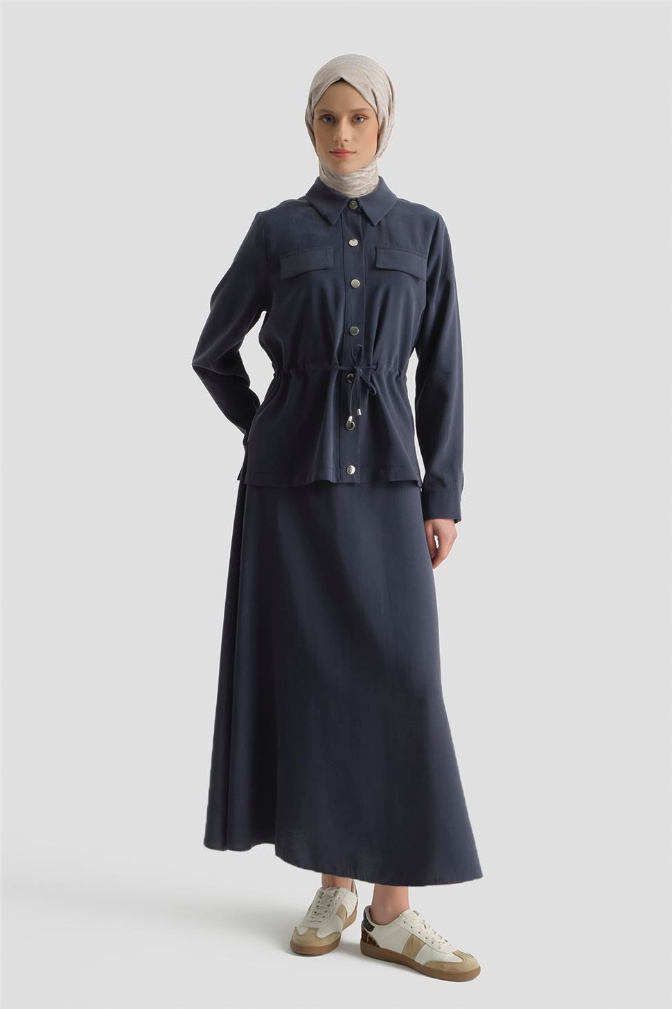تجمع هذه المجموعة الأناقة العصرية والبساطة الراقية من خلال تصميمها المتوازن وخطوطها النظيفة، لتوفر راحة مع وقفة متطورة. البلوزة ذات الخصر المربوط توازن معالم الجسم بدقة، بينما يضيف القص المتدفق للتنورة رقة طبيعية لمظهرك. توفر خيارات متنوعة من الأناقة، من الملابس الحضرية اليومية إلى التوليفات الأكثر تميزاً.
