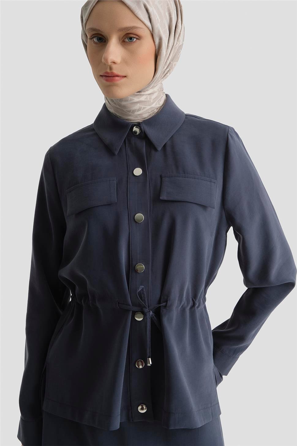 مجموعة باللون الأزرق الداكن مع خصر مربوط