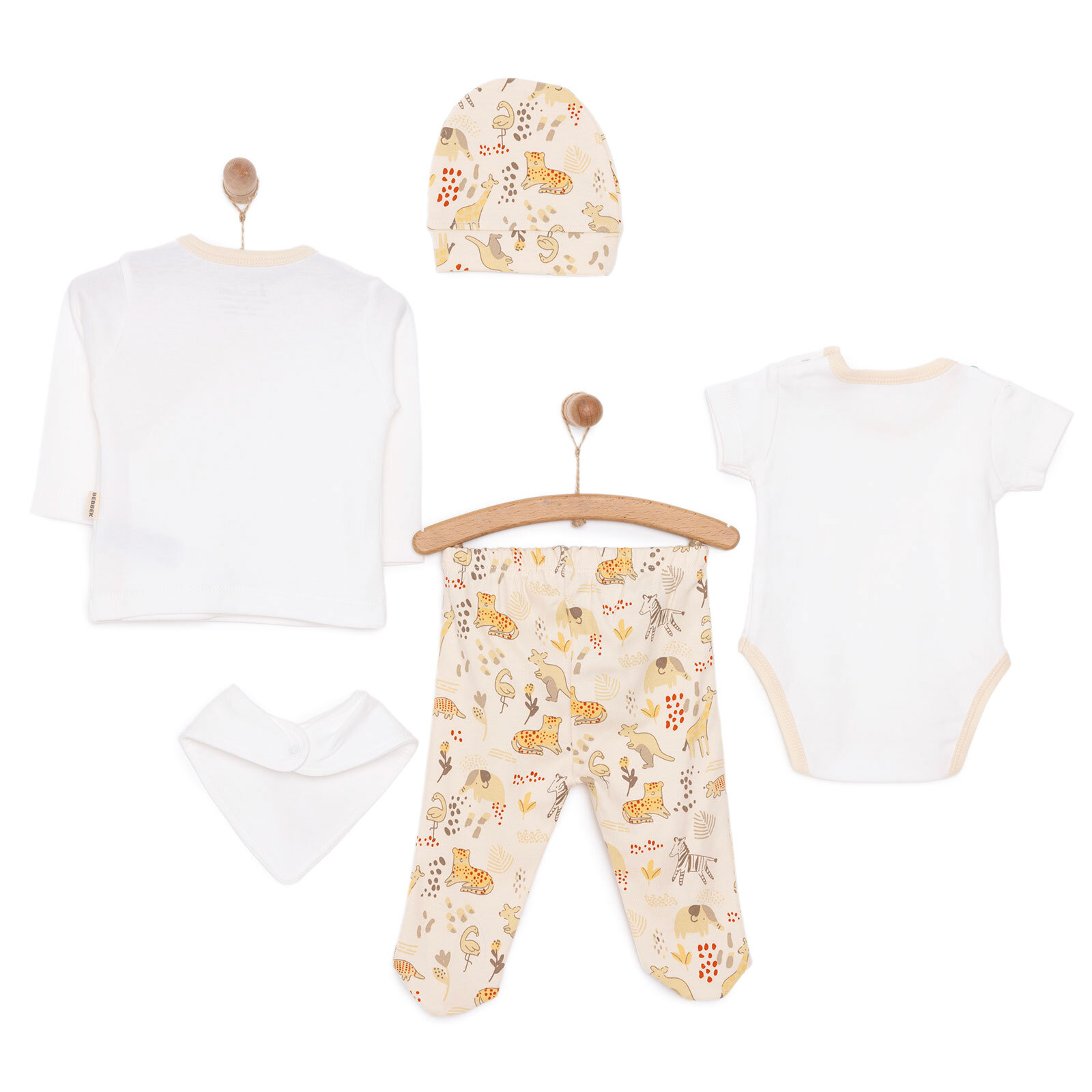 مجموعة ببيك للمواليد الجدد من الفتيات ٥ قطع، لون البيج الفاتح، للمواليد الجدد
