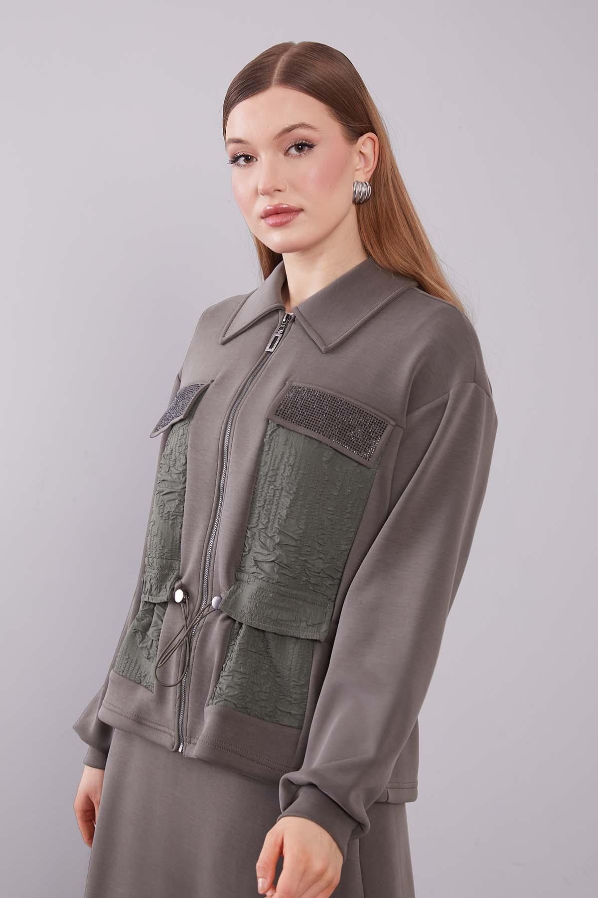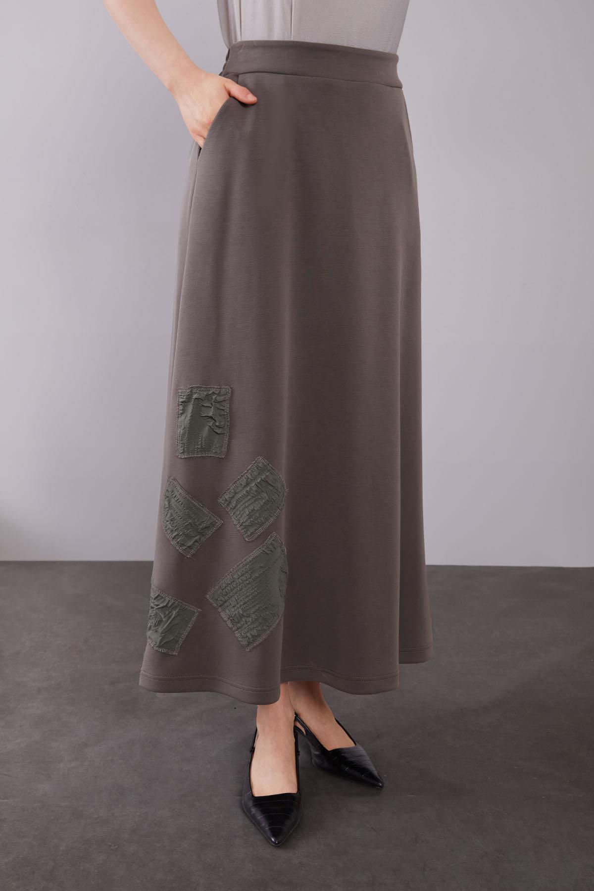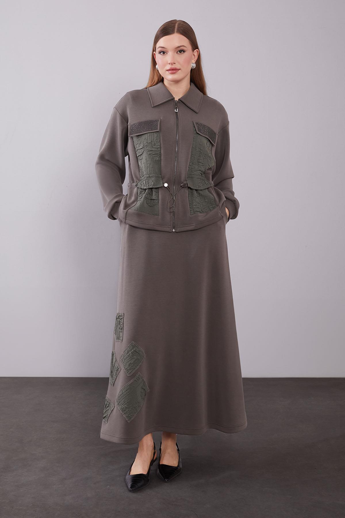 مجموعة تنورة بتفاصيل الترقيع المطوي باللون الرمادي