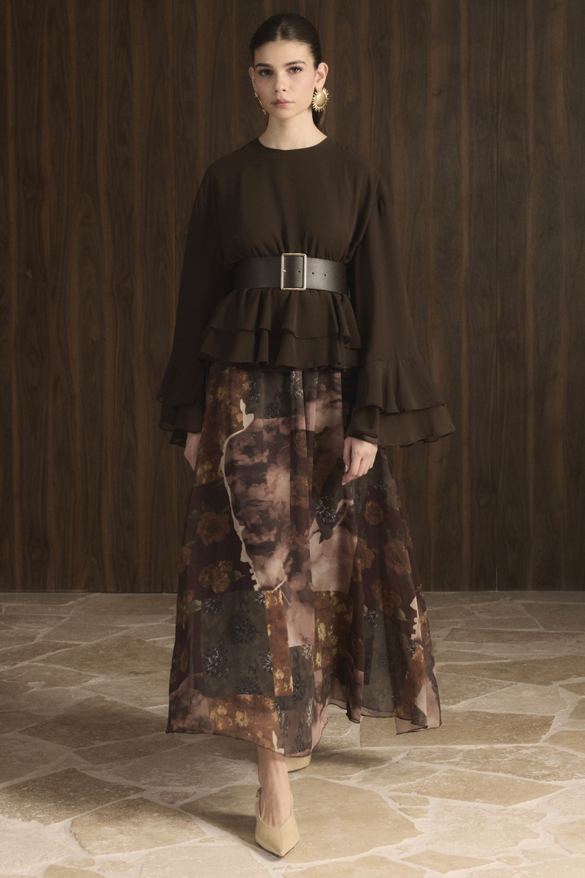 مجموعة تنورة شيفون مزخرفة – باللون البني
