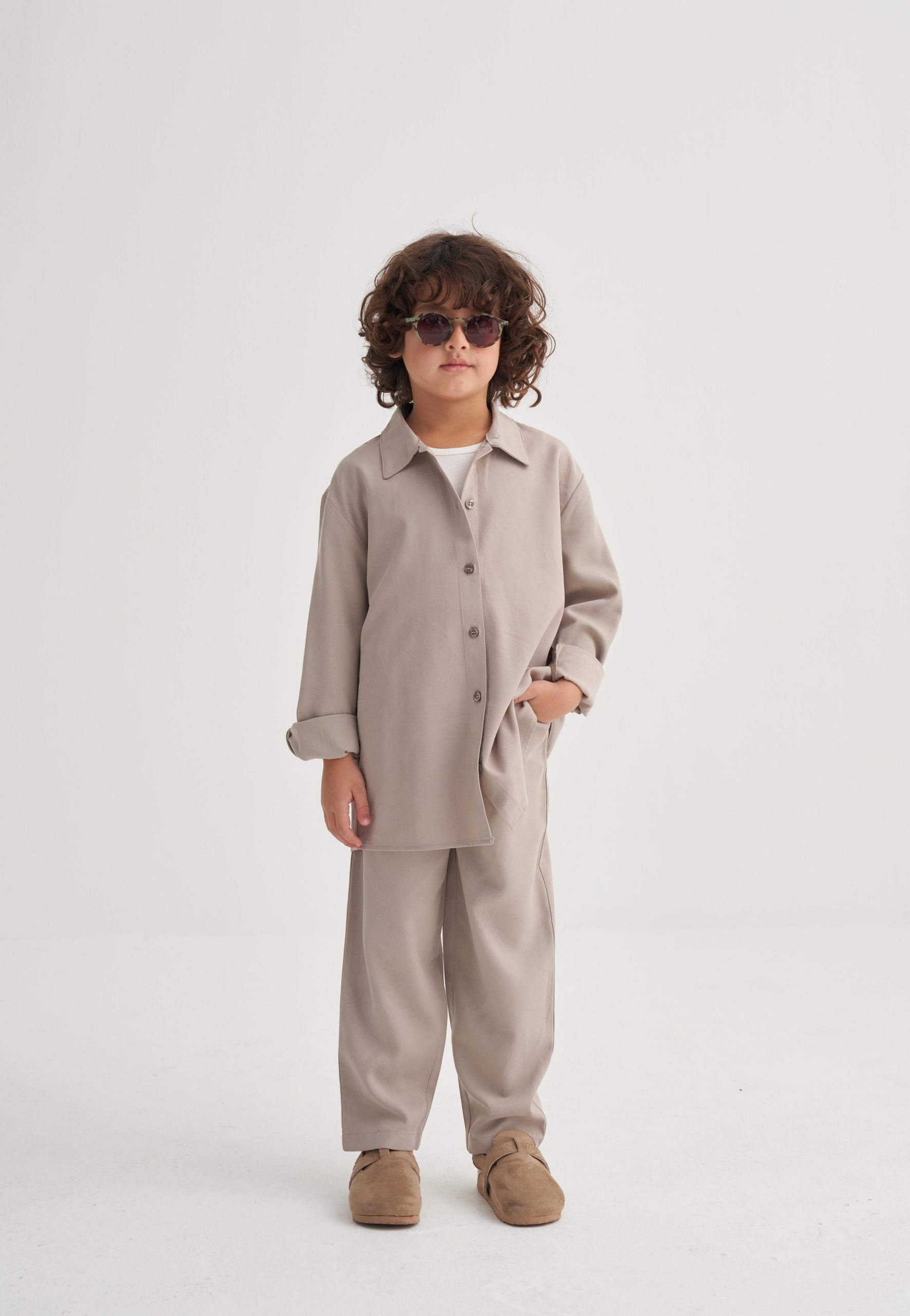 مجموعة تينسل مع قميص للعمر 2-7 سنوات بلون البيج