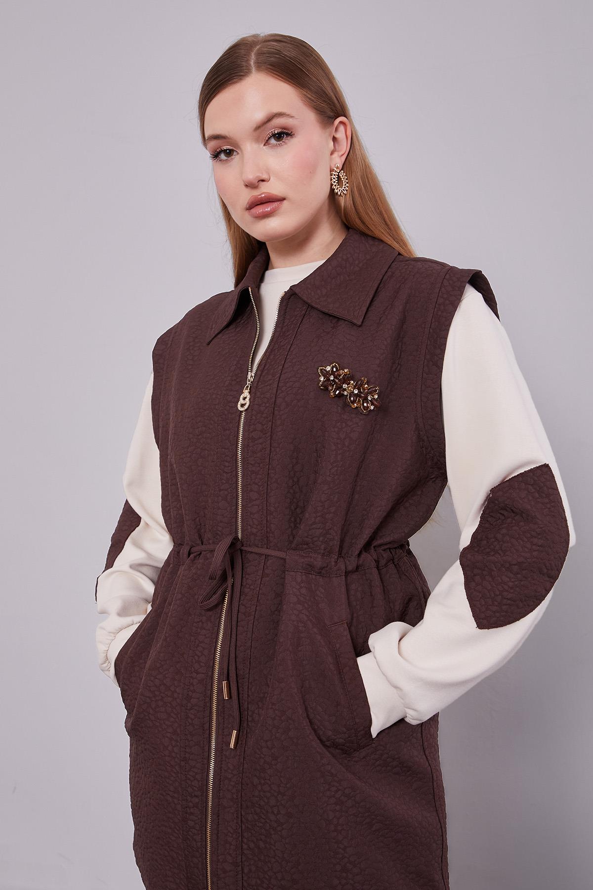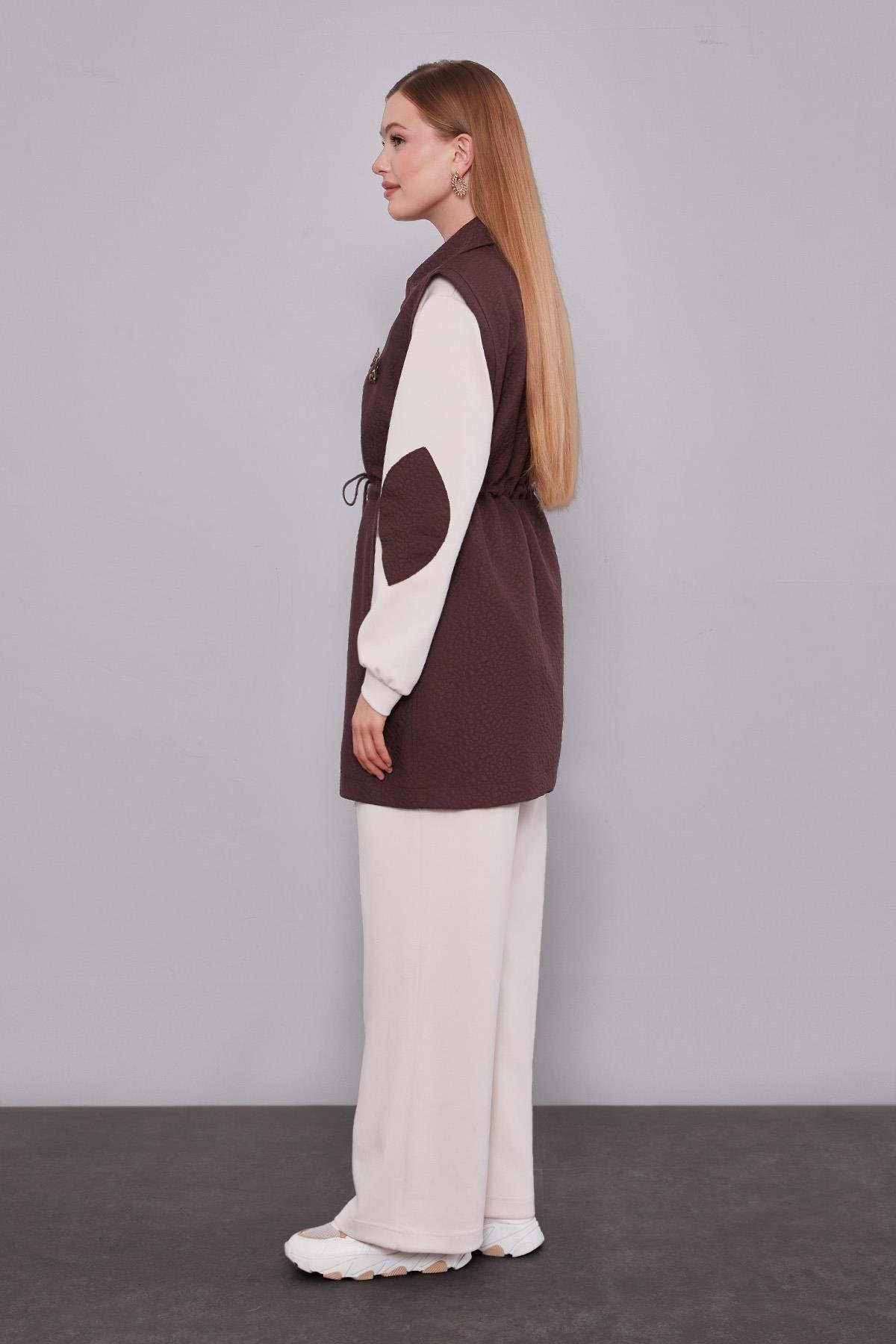 مجموعة ثلاثية القطع مع سترة بنمط ذاتي باللون القهوة