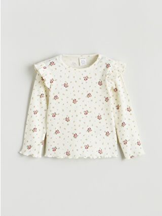 سويت شيرت بطبعة وحافة مطوية سميكة بلون العاج