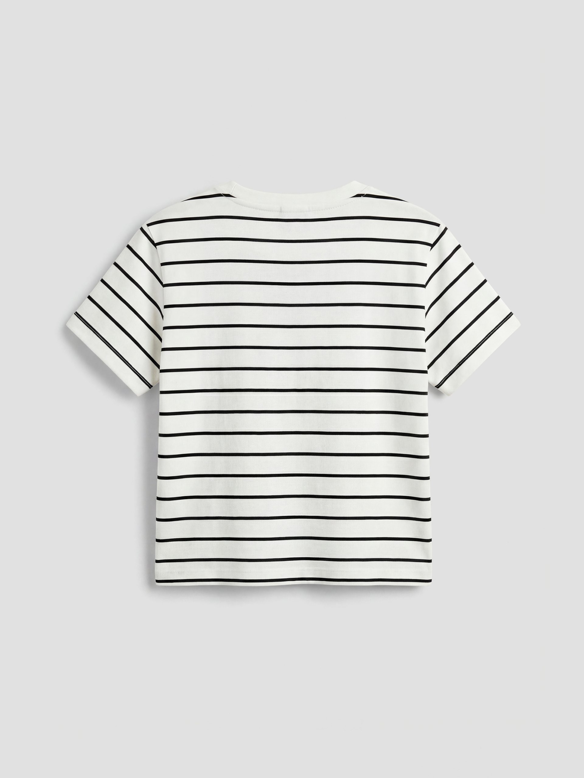 ست رومبر و تي شيرت مخططة باللون البيج للأطفال الذكور