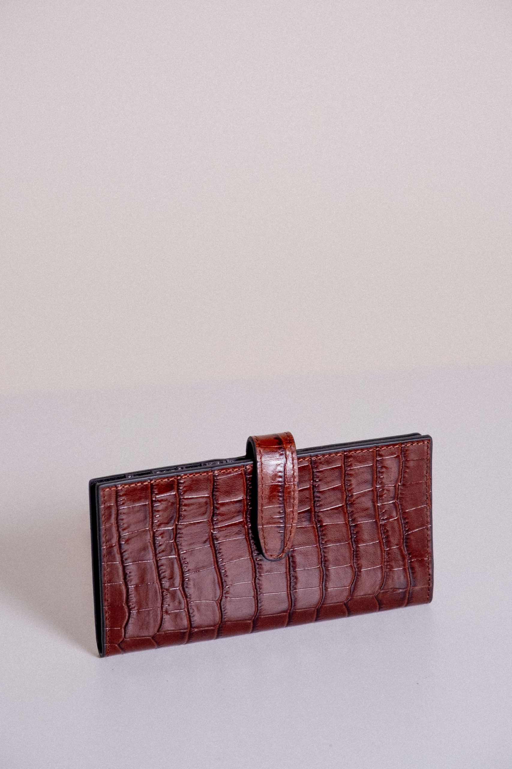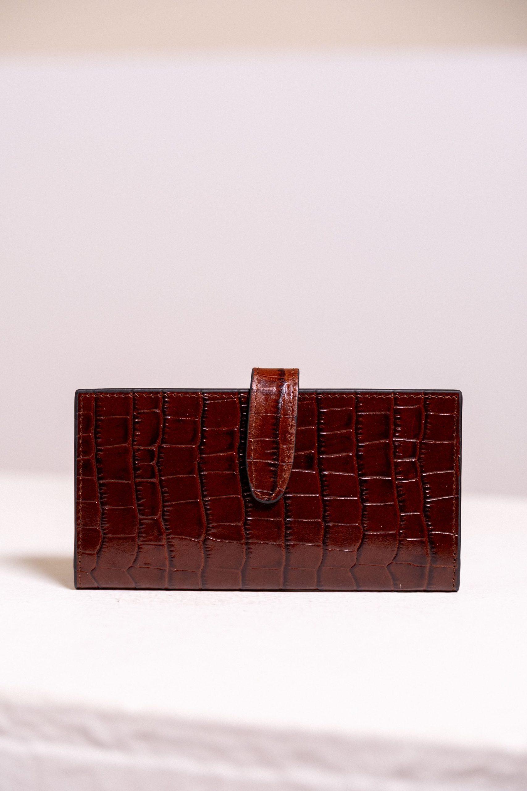 محفظة جلد بتصميم التمساح – لون القهوة المُرّة