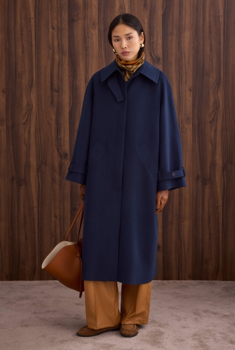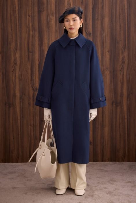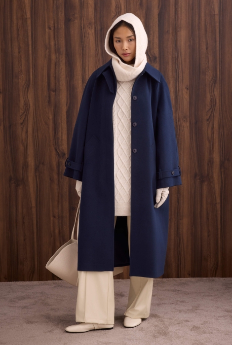 يقدم هذا المعطف المصنوع من خليط الصوف ملمسًا دافئًا وناعمًا، بينما يعمل حزام الخصر على إبراز القوام بأناقة. خطوطه النظيفة تخلق بساطة عصرية، وشكله المتدفق يضيف أناقة طبيعية ومتطورة للستايل الحضري.