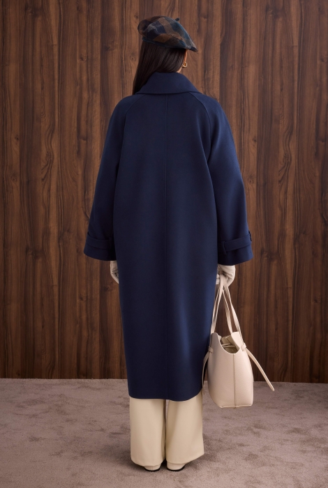 معطف أزرق بحري داكن بتفاصيل في الياقة