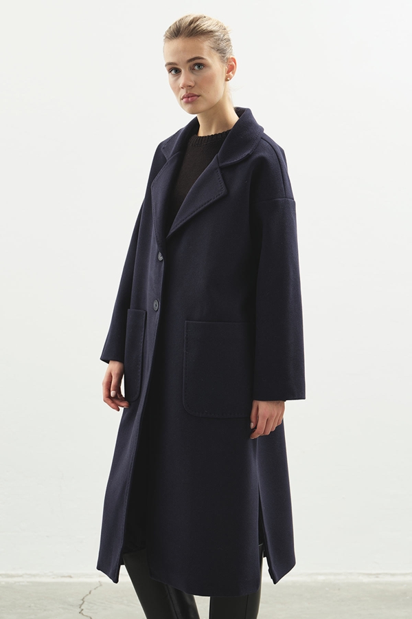 مميزات المعطف الأزرق الداكن بتفاصيل التطريز
