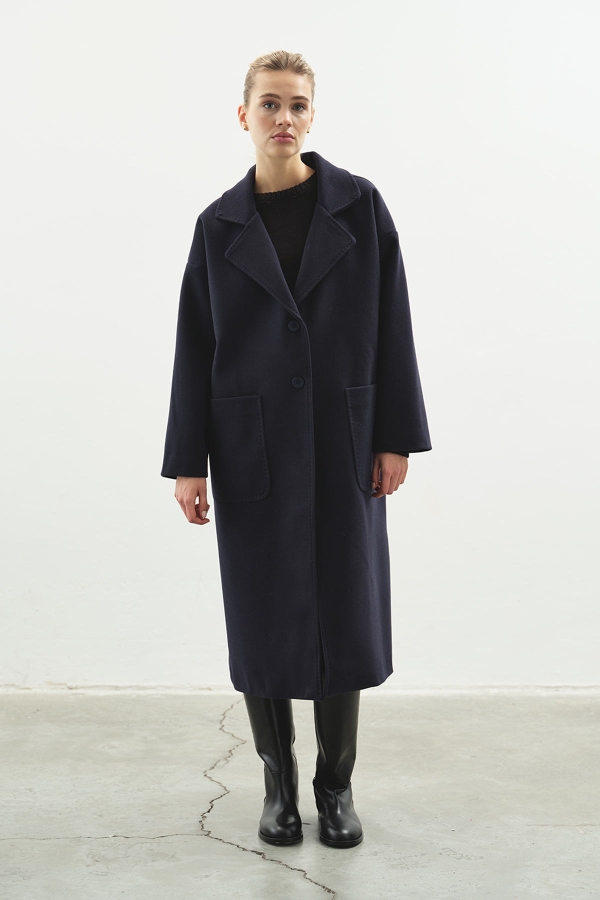 يقدم هذا المعطف المصنوع من خليط الصوف ملمسًا دافئًا وناعمًا، بينما يعمل حزام الخصر على إبراز القوام بأناقة. خطوطه النظيفة تخلق بساطة عصرية، وشكله المتدفق يضيف أناقة طبيعية ومتطورة للستايل الحضري.