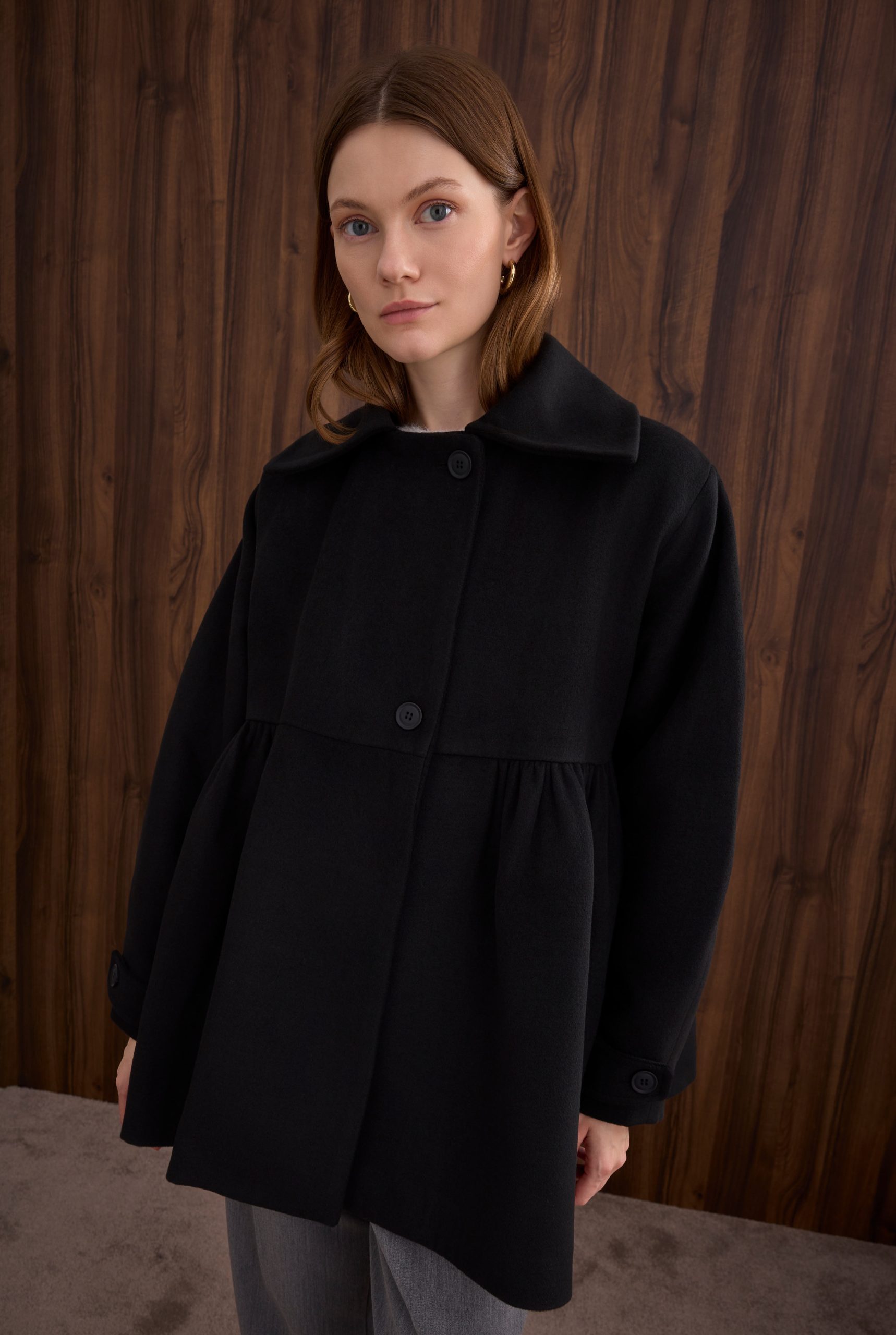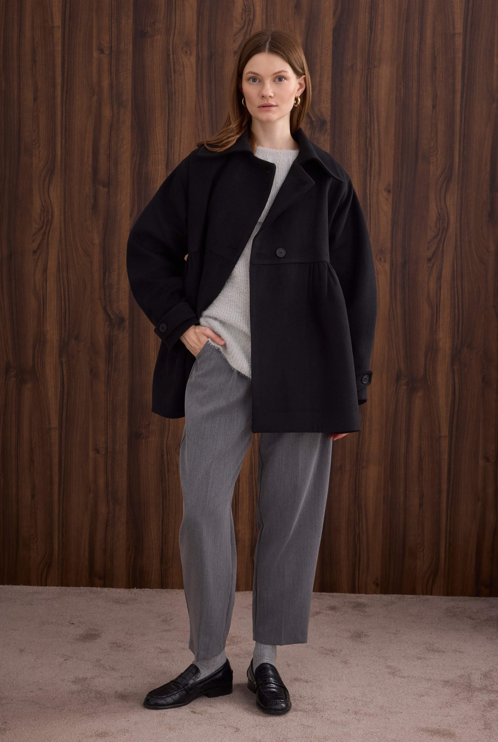 يقدم هذا المعطف المصنوع من خليط الصوف ملمسًا دافئًا وناعمًا، بينما يعمل حزام الخصر على إبراز القوام بأناقة. خطوطه النظيفة تخلق بساطة عصرية، وشكله المتدفق يضيف أناقة طبيعية ومتطورة للستايل الحضري.