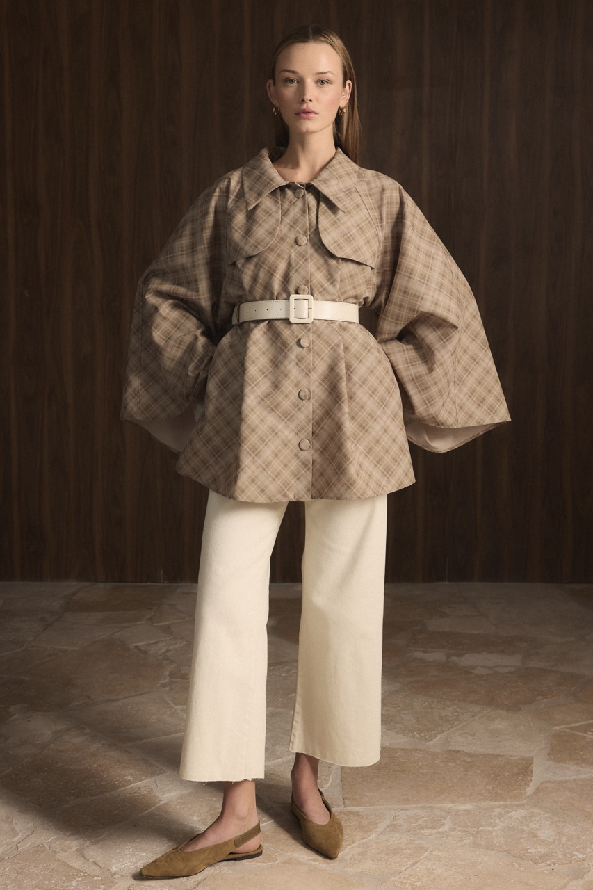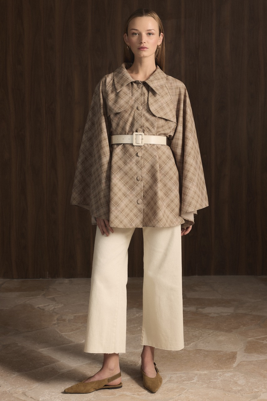 يُكمل هذا المعطف المصنوع من قماش مطبوع بنقشة الترتان أسلوبك بتصميمه القوي والحديث. يُقدّم الكُم الإسباني الواسع شكلاً جريئاً وديناميكياً، بينما يُضفي حزام الجلد العريض لمسة أنيقة مع التركيز على منطقة الخصر. تفصيل الأزرار الأمامية يدمج الخطوط الكلاسيكية للمعطف مع لمسات عصرية. بفضل طوله البالغ 79 سم، يمكن استخدامه بسهولة مع مجموعات الفساتين والسراويل.