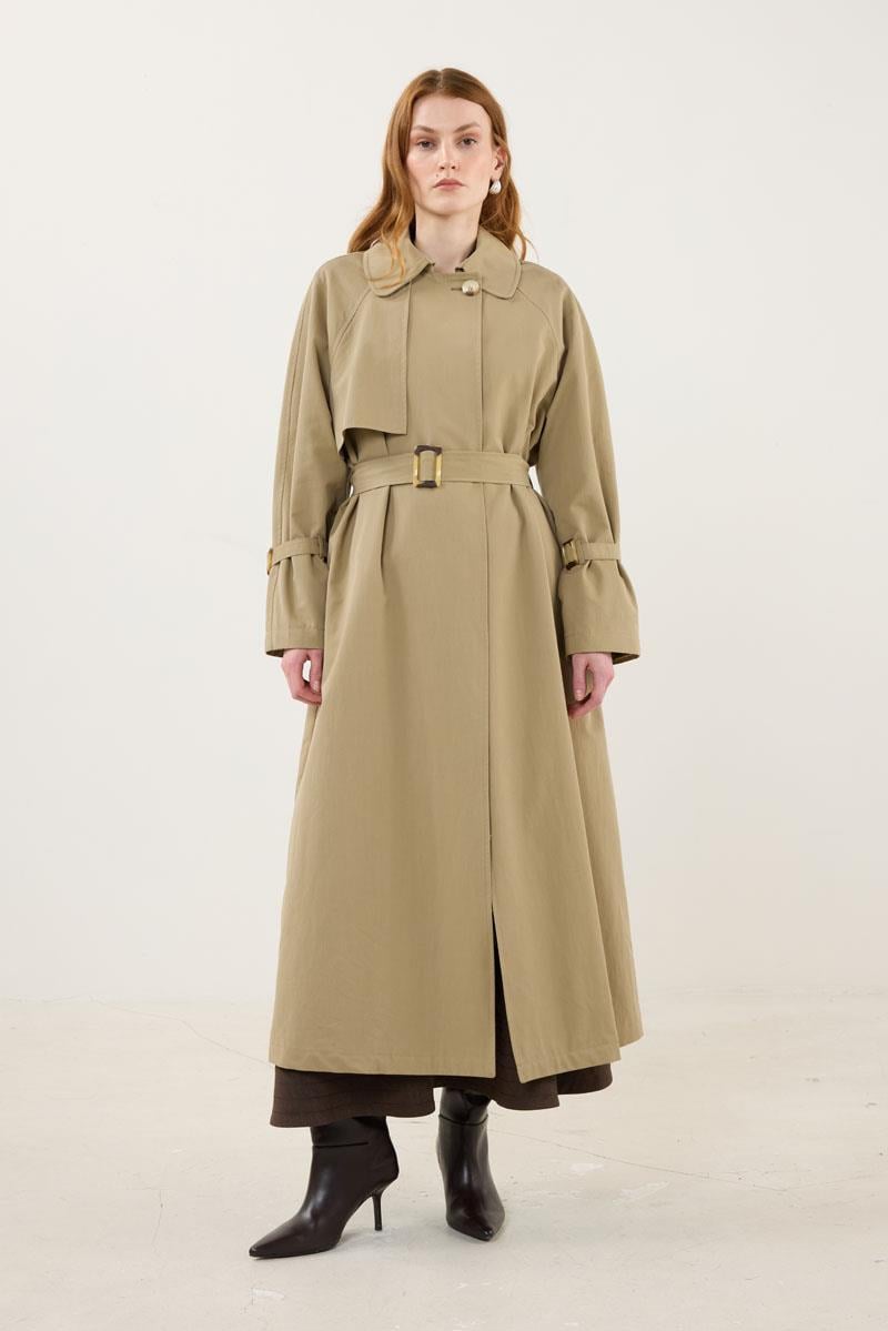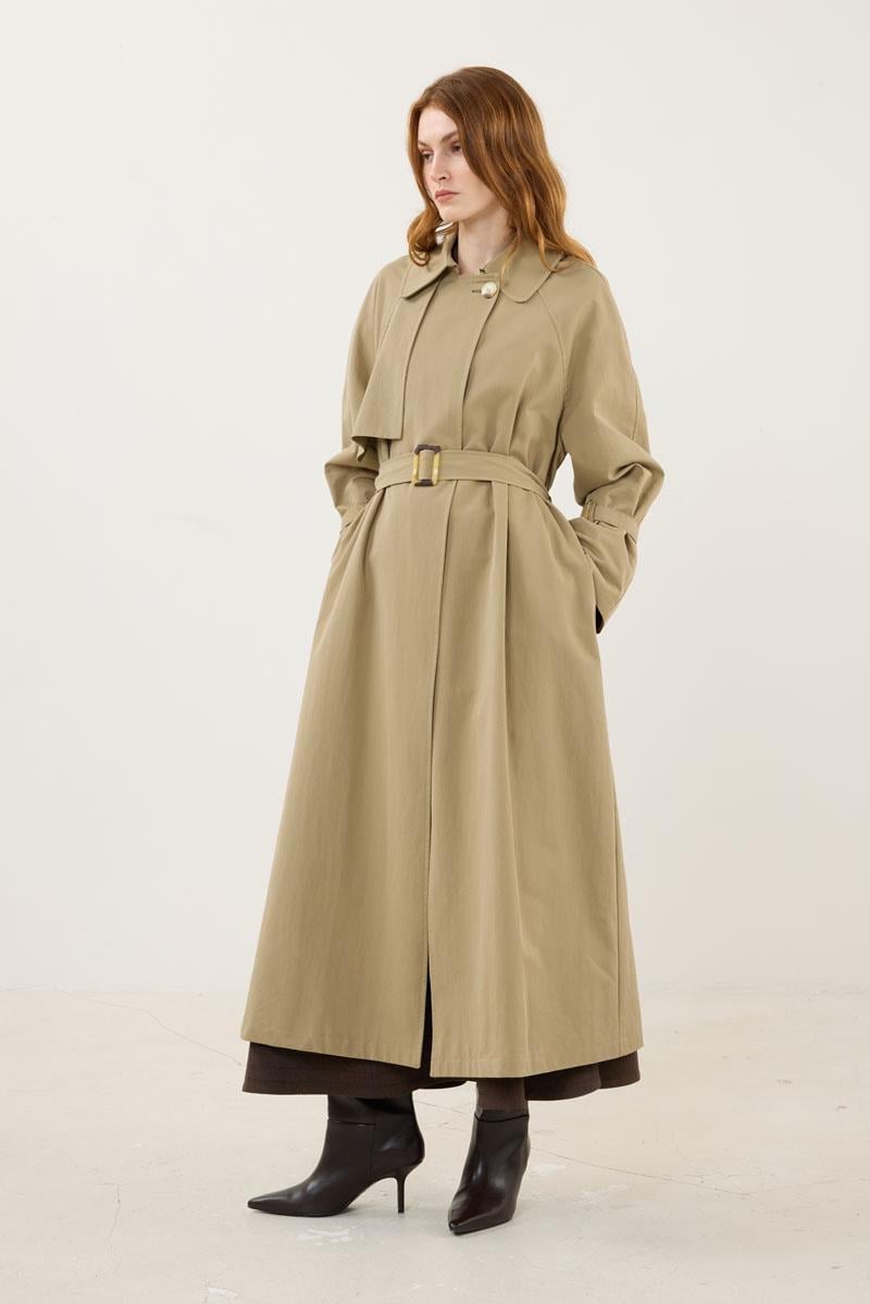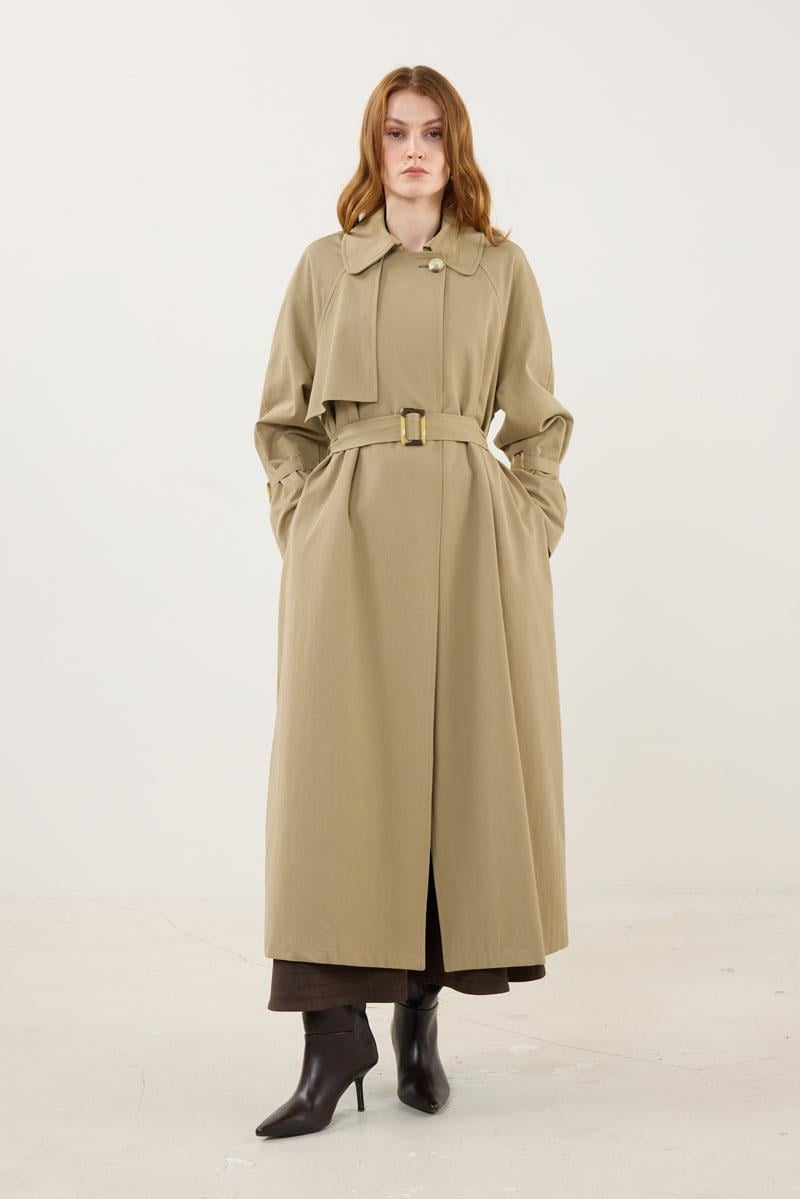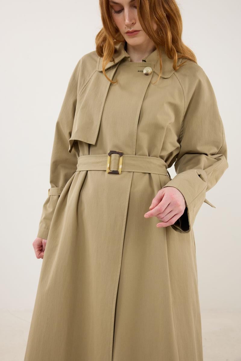 معطف الخندق الكاكي مع إبزيم عظمي