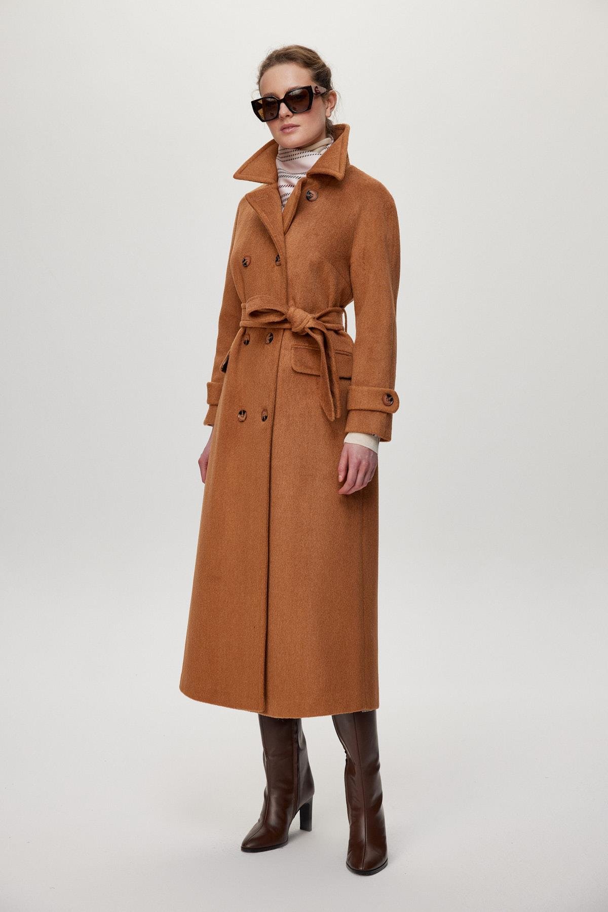 يقدم هذا المعطف المصنوع من خليط الصوف ملمسًا دافئًا وناعمًا، بينما يعمل حزام الخصر على إبراز القوام بأناقة. خطوطه النظيفة تخلق بساطة عصرية، وشكله المتدفق يضيف أناقة طبيعية ومتطورة للستايل الحضري.