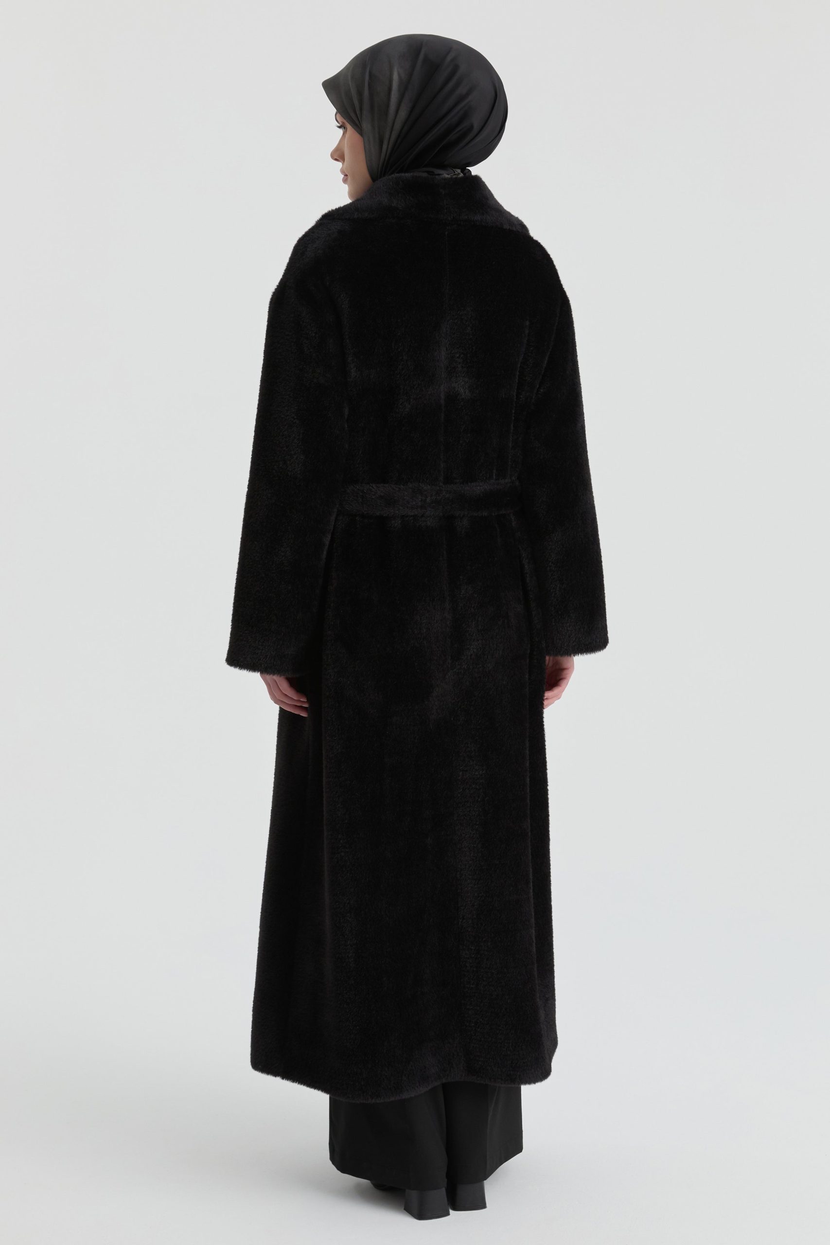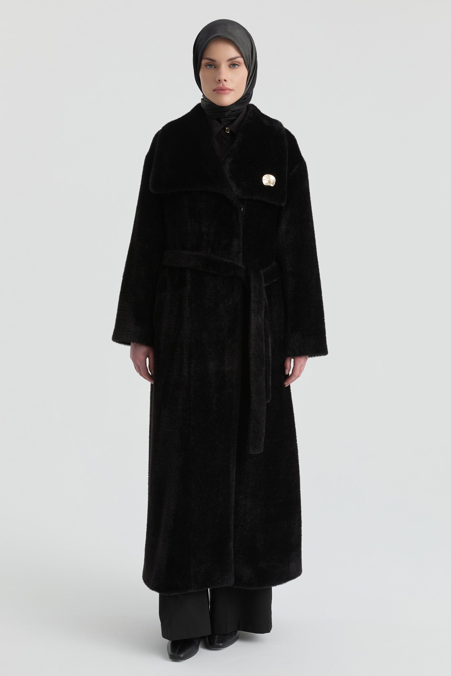 يقدم هذا المعطف المصنوع من خليط الصوف ملمسًا دافئًا وناعمًا، بينما يعمل حزام الخصر على إبراز القوام بأناقة. خطوطه النظيفة تخلق بساطة عصرية، وشكله المتدفق يضيف أناقة طبيعية ومتطورة للستايل الحضري.