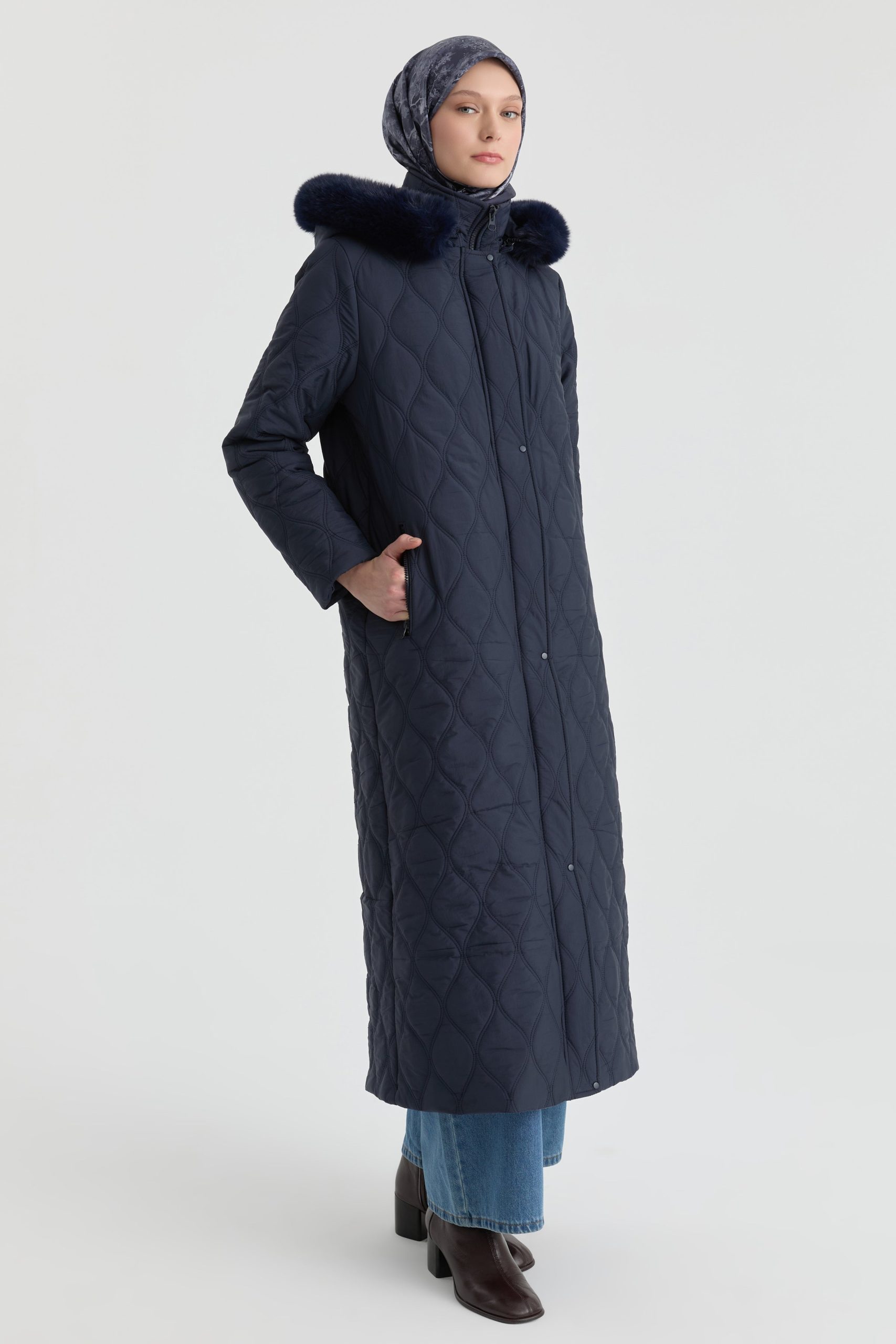 معطف بقبة – أزرق بحري