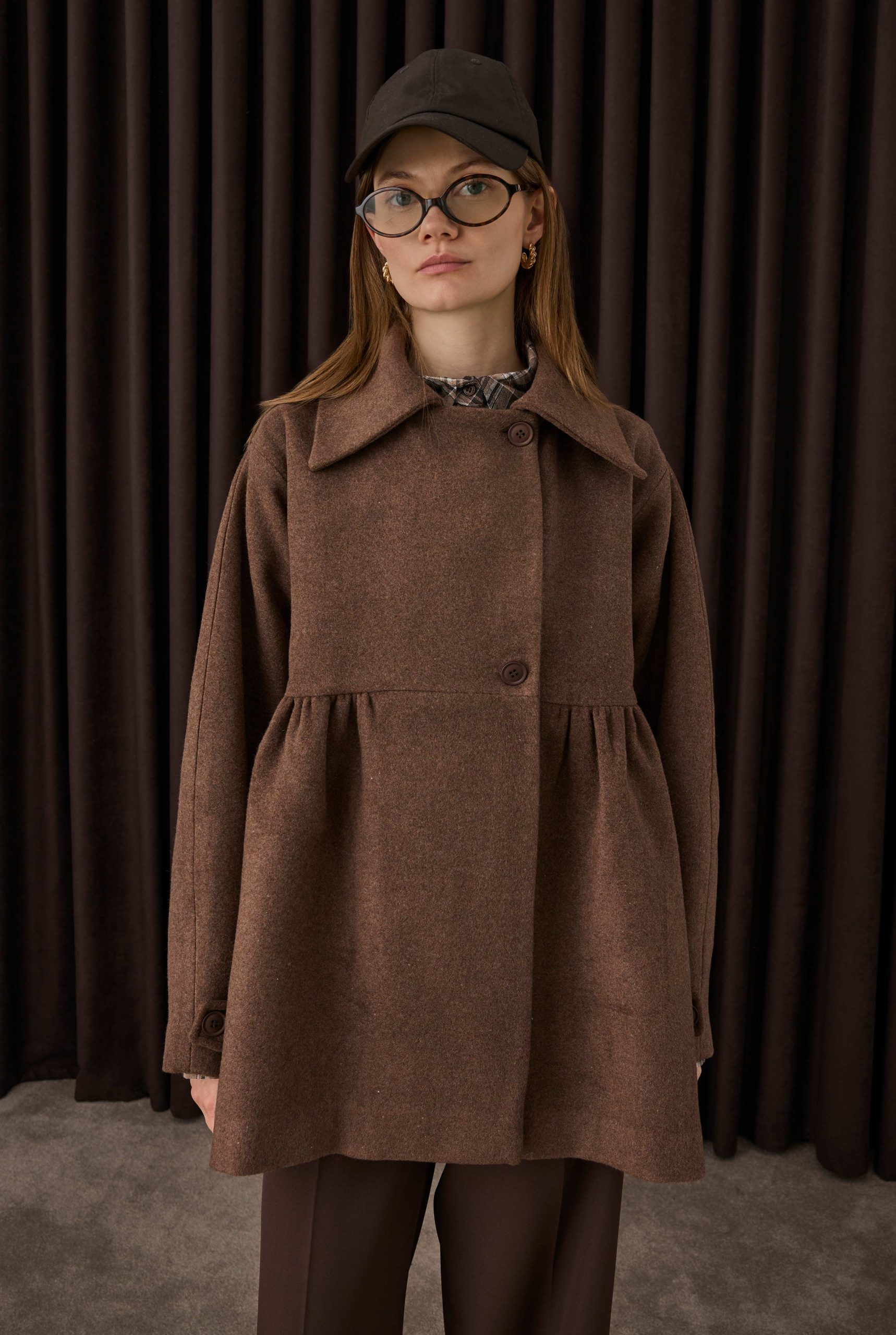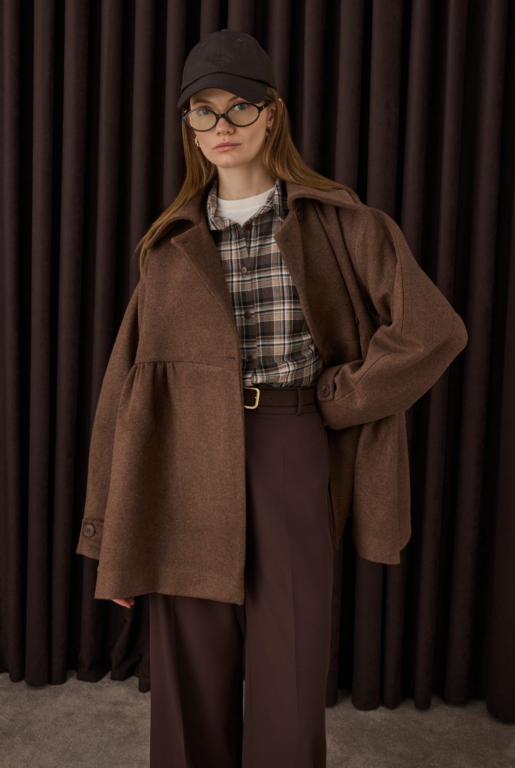 يقدم هذا المعطف المصنوع من خليط الصوف ملمسًا دافئًا وناعمًا، بينما يعمل حزام الخصر على إبراز القوام بأناقة. خطوطه النظيفة تخلق بساطة عصرية، وشكله المتدفق يضيف أناقة طبيعية ومتطورة للستايل الحضري.