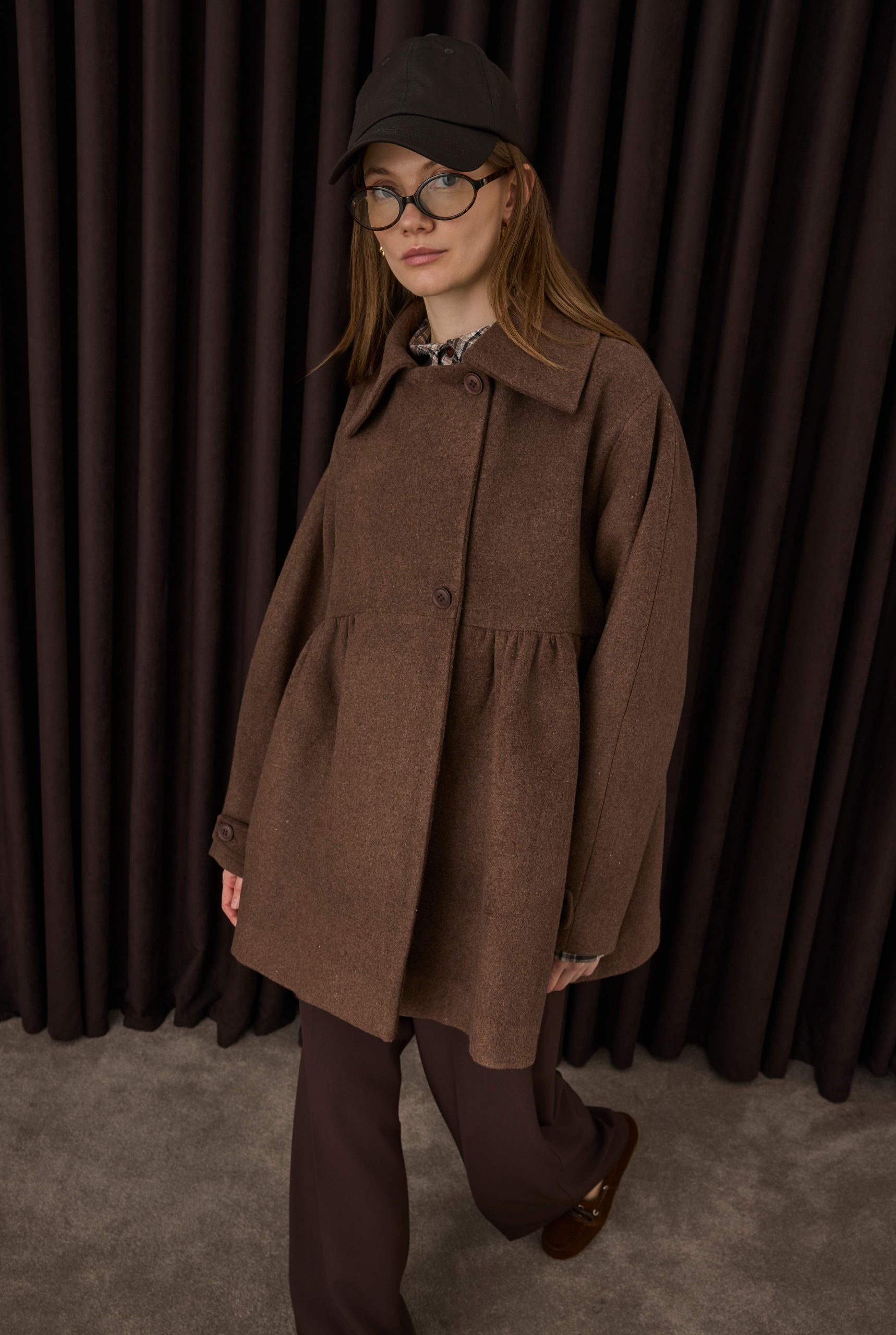 معطف بلون الجمل بتفاصيل مطوي
