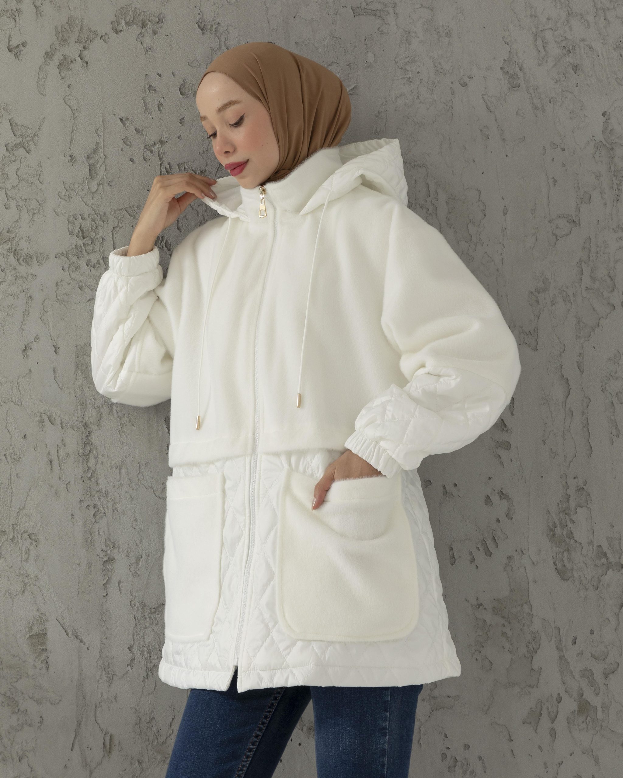 معطف بيج مبطن بالقطن المطرز