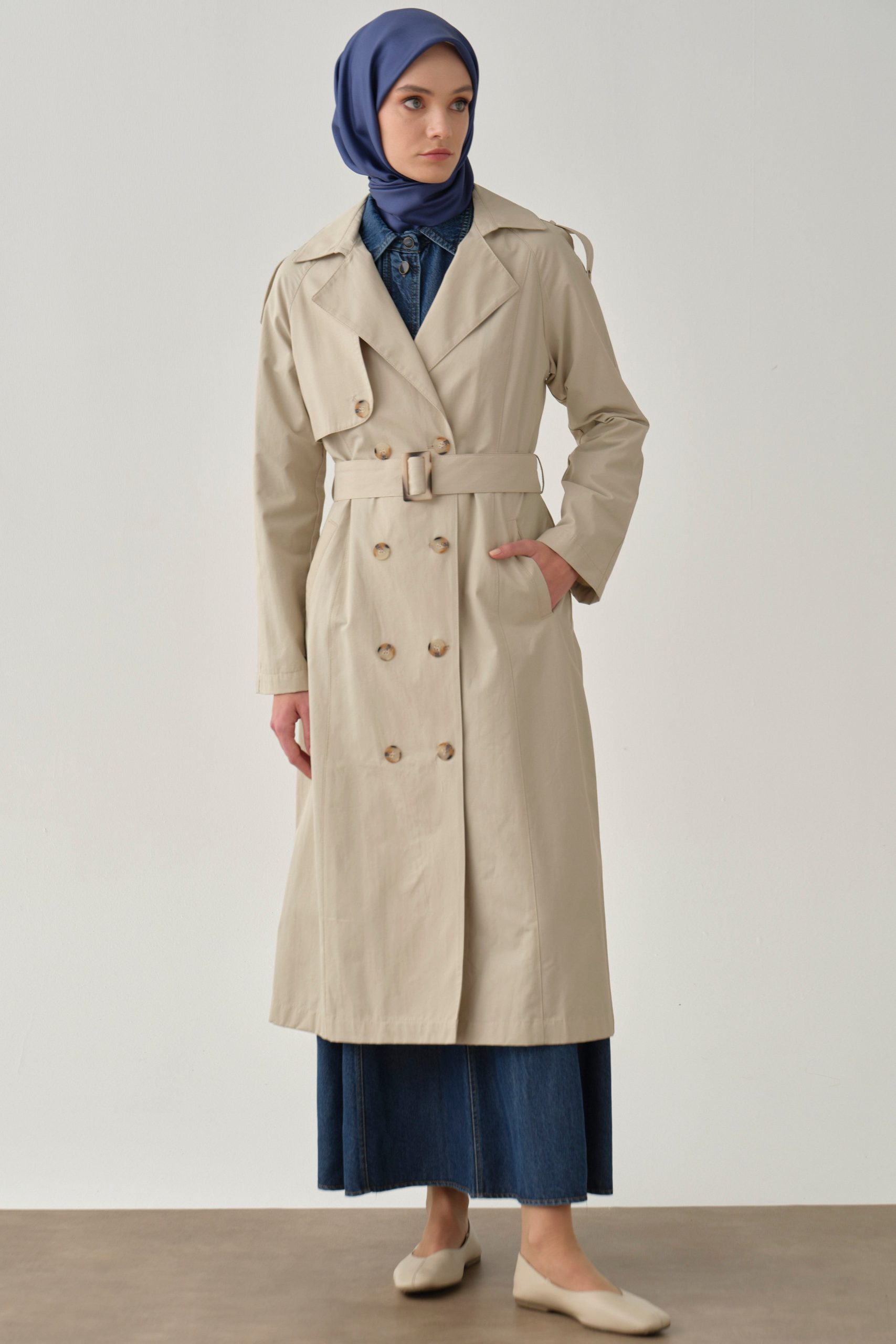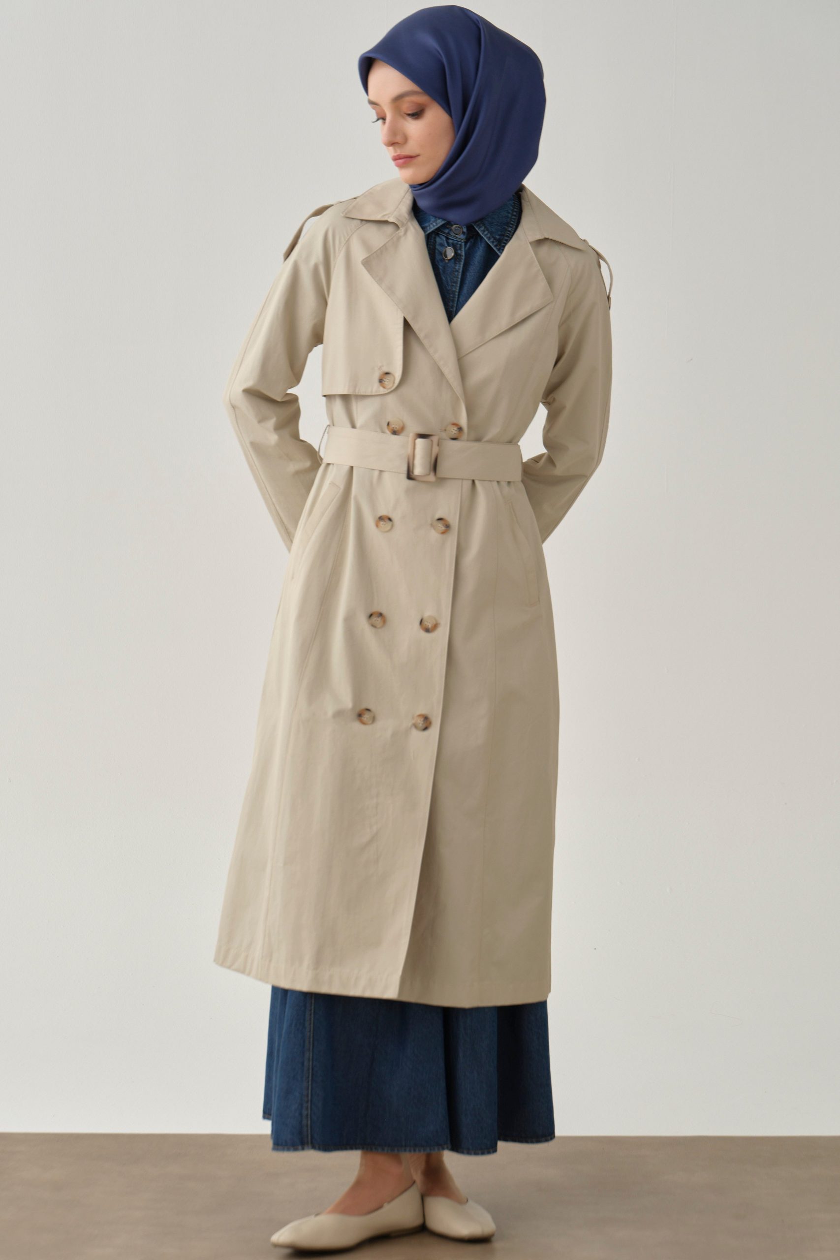 معطف ترنش بأحزمة وأبليت – بيج