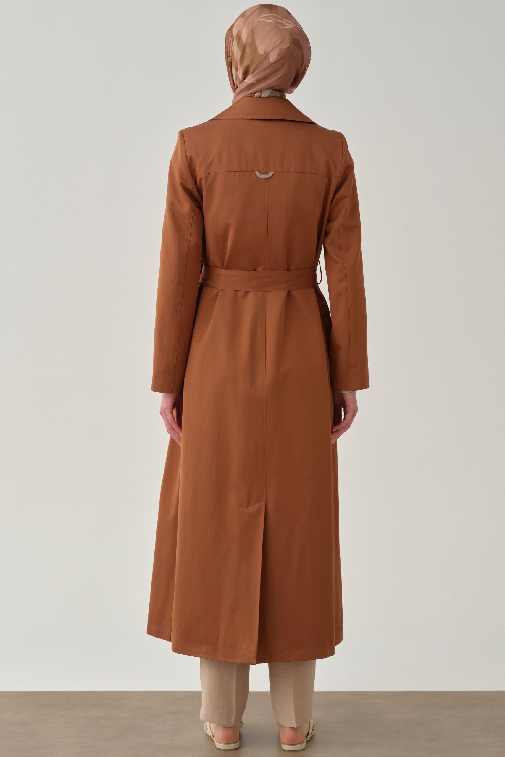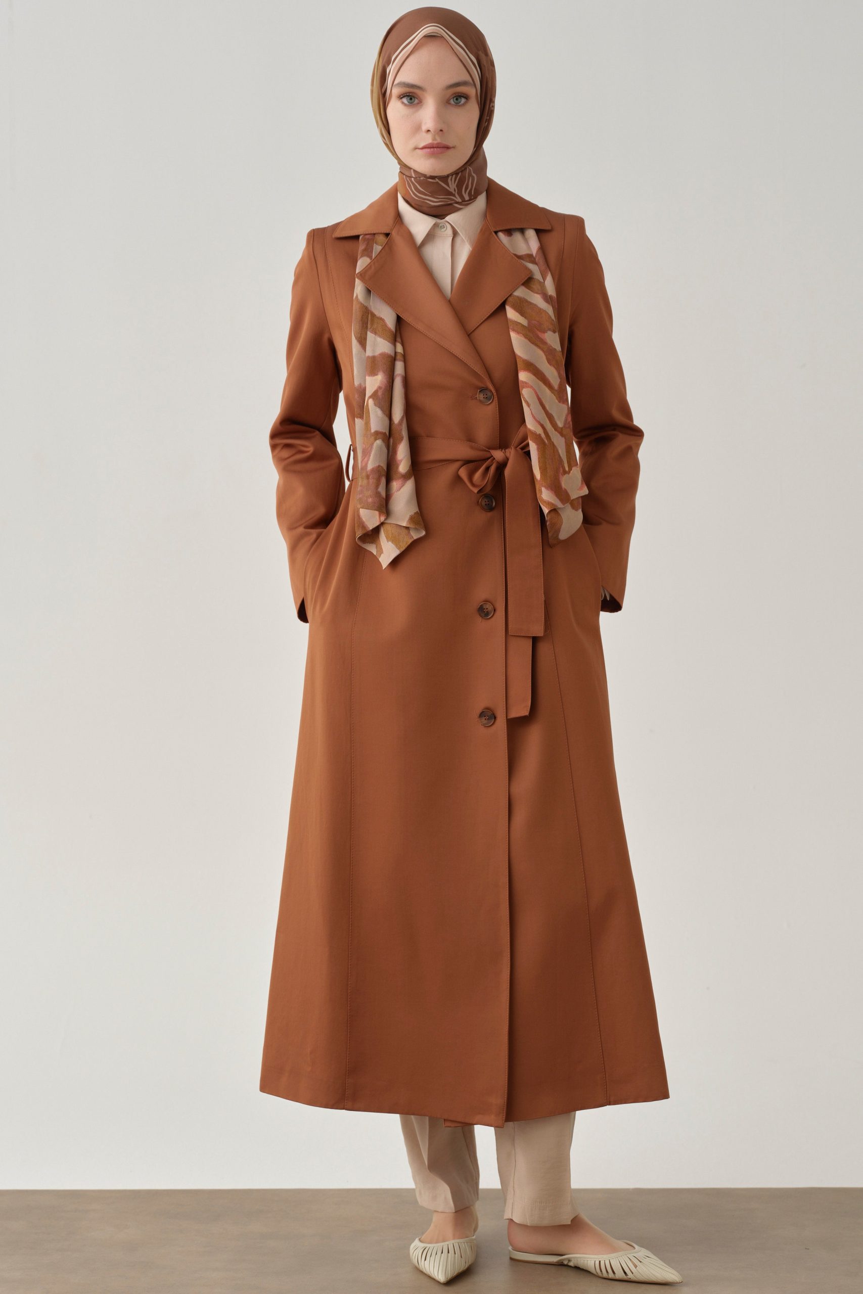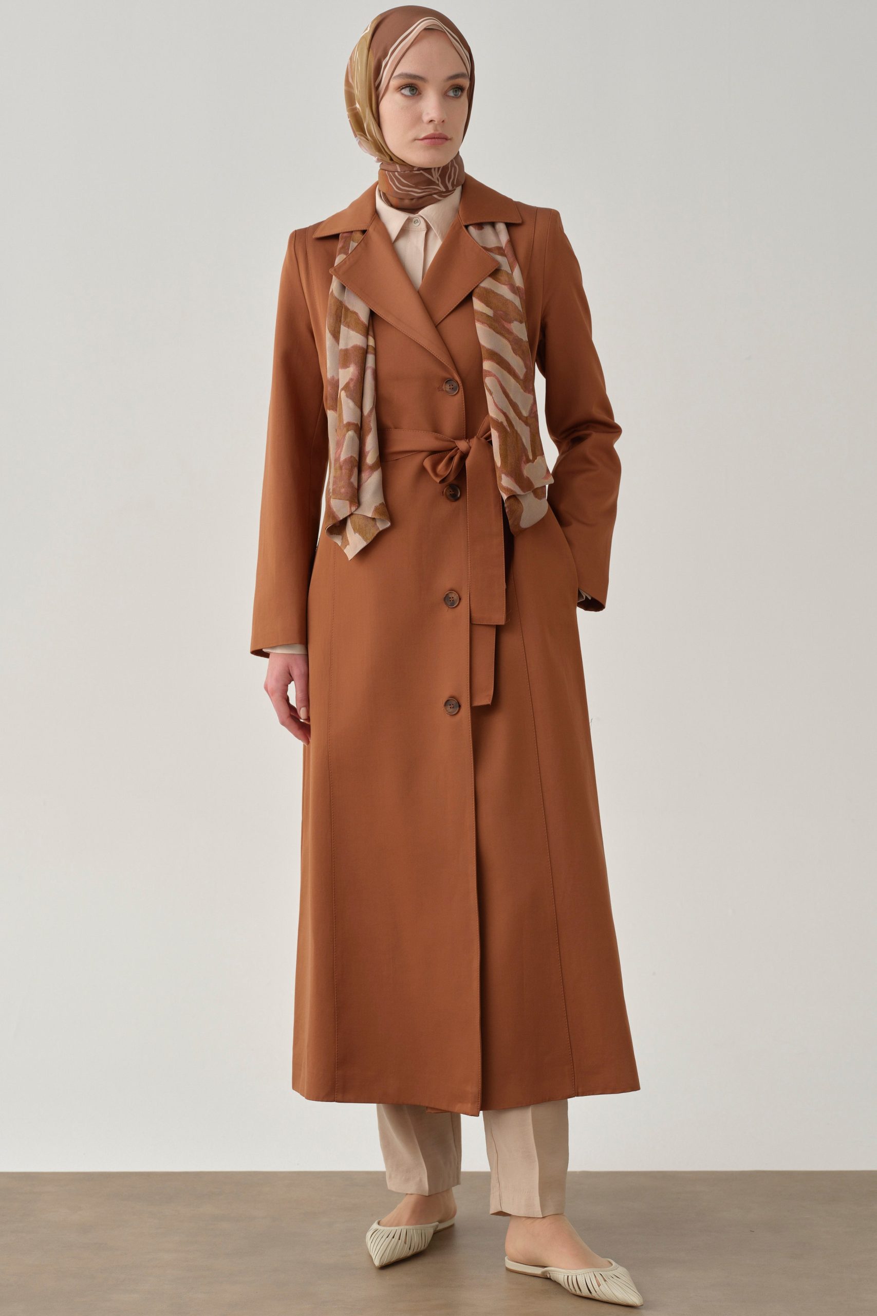 معطف ترنش بتفاصيل وشاح غارني – لون تابا