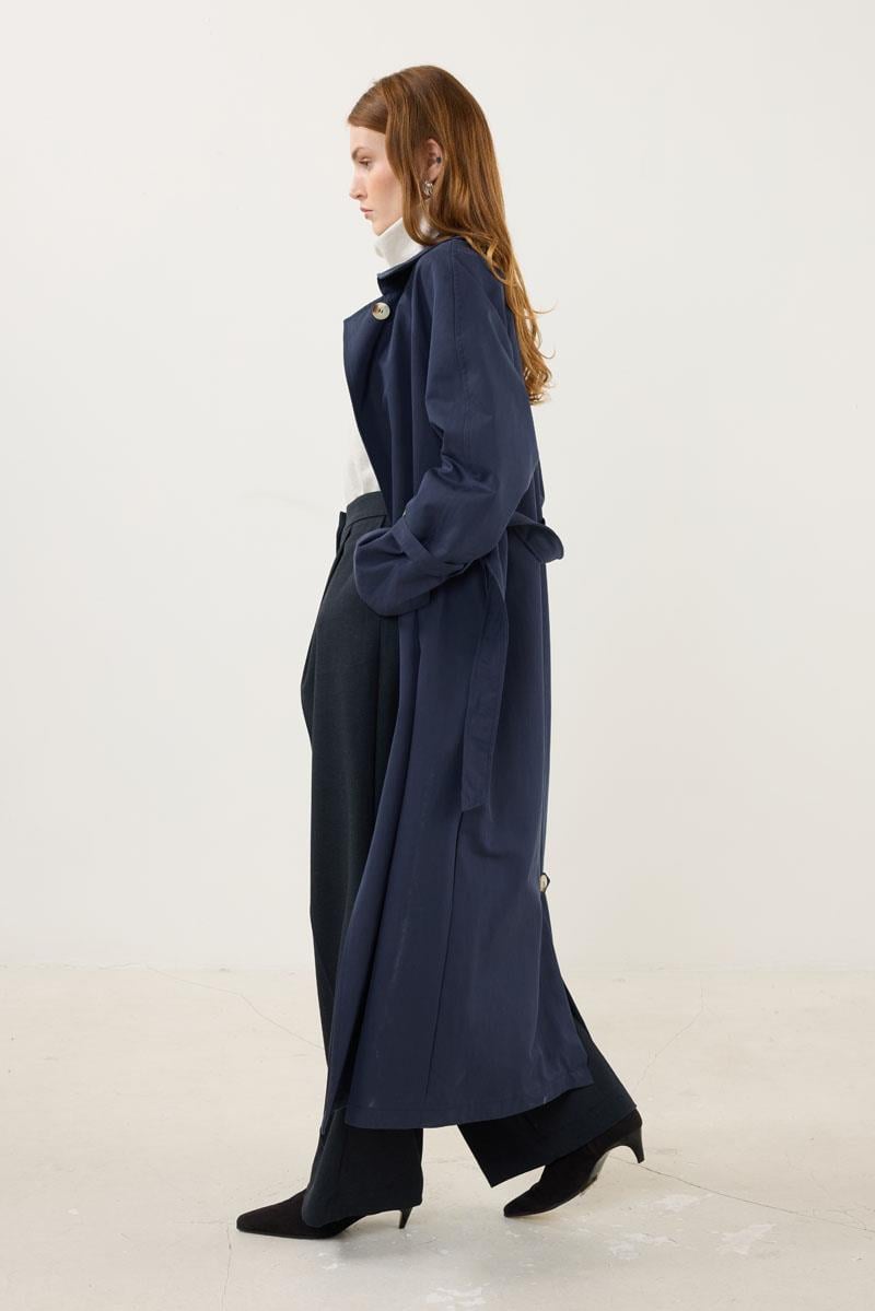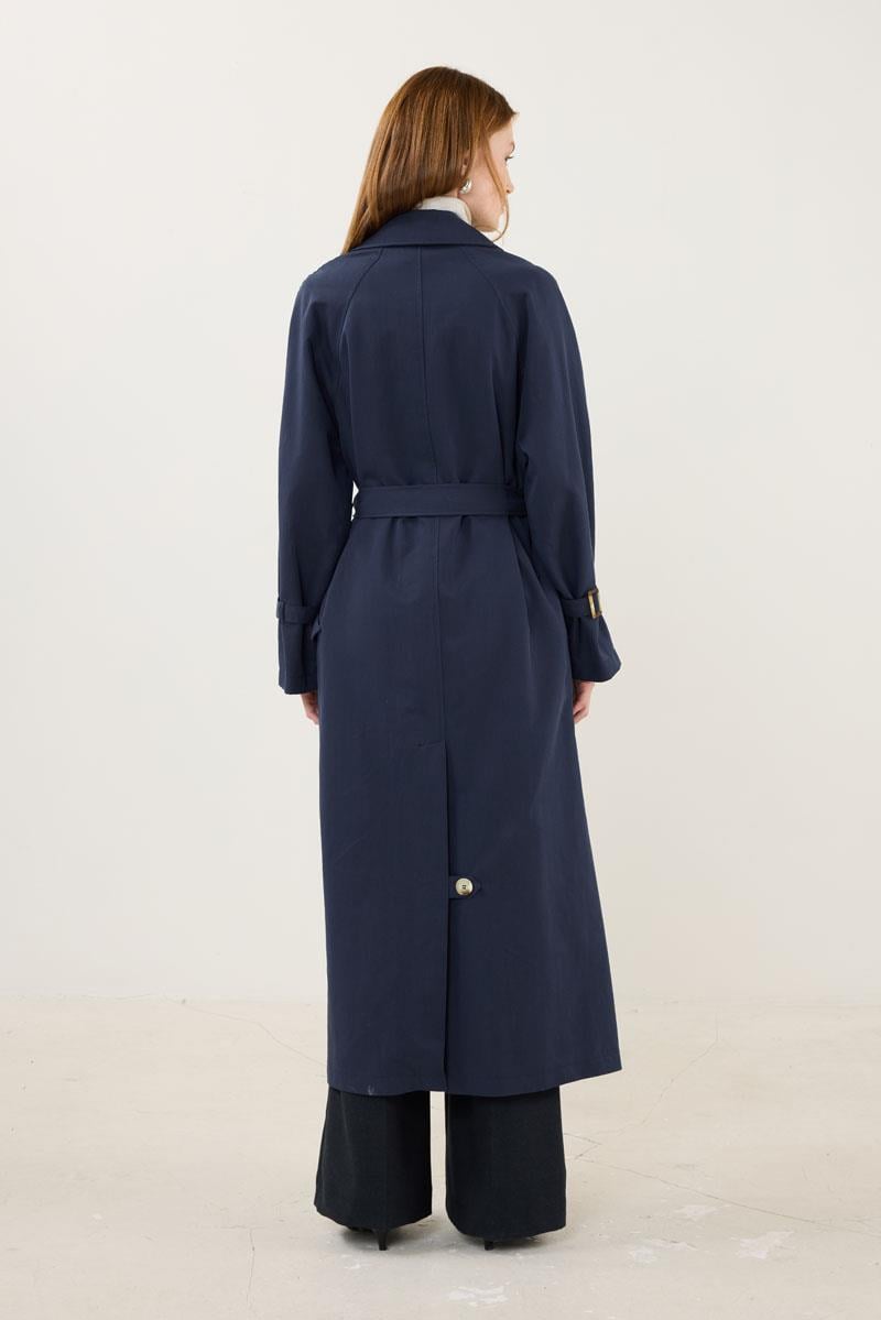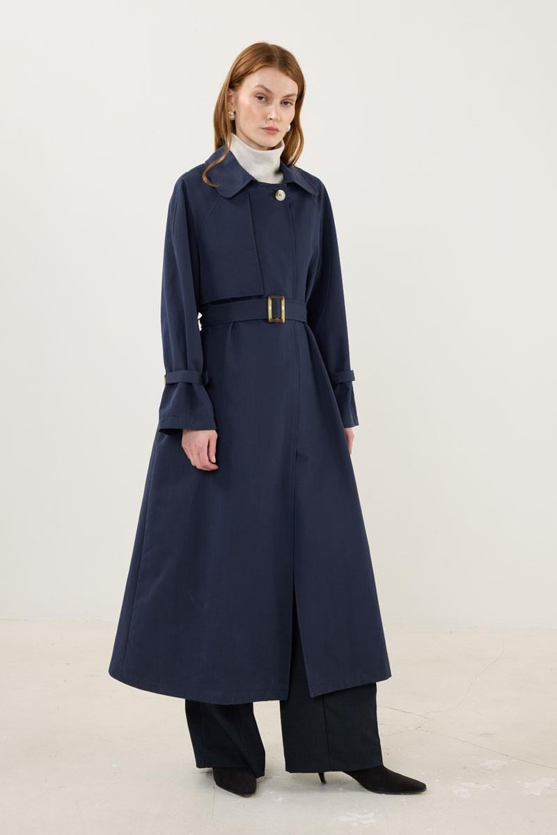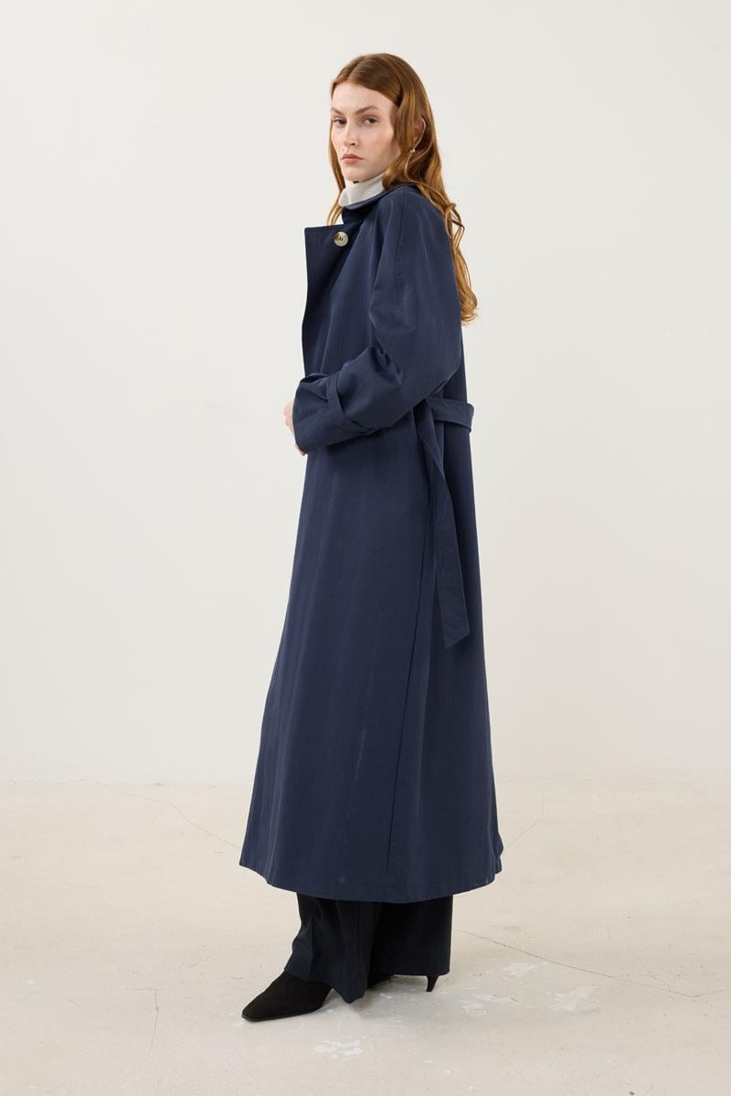 معطف ترينش أزرق بحري بسُحّاب عظمي