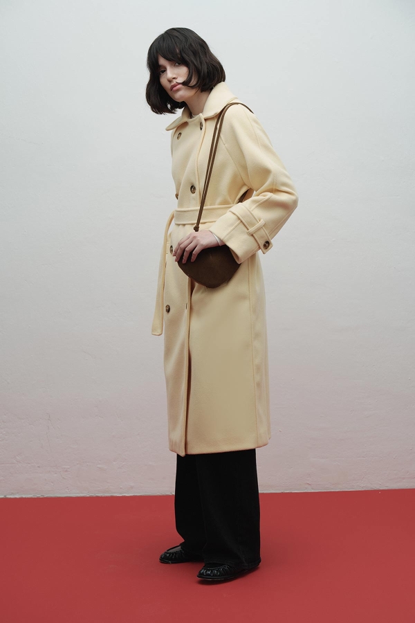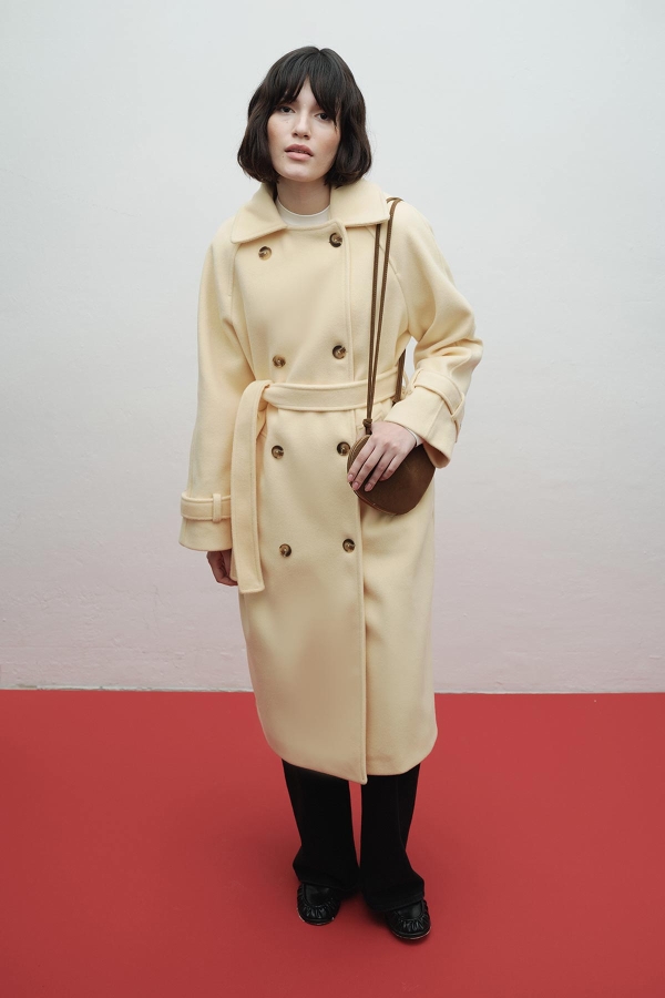 معطف ترينش أصفر مميز بتصميم متقاطع