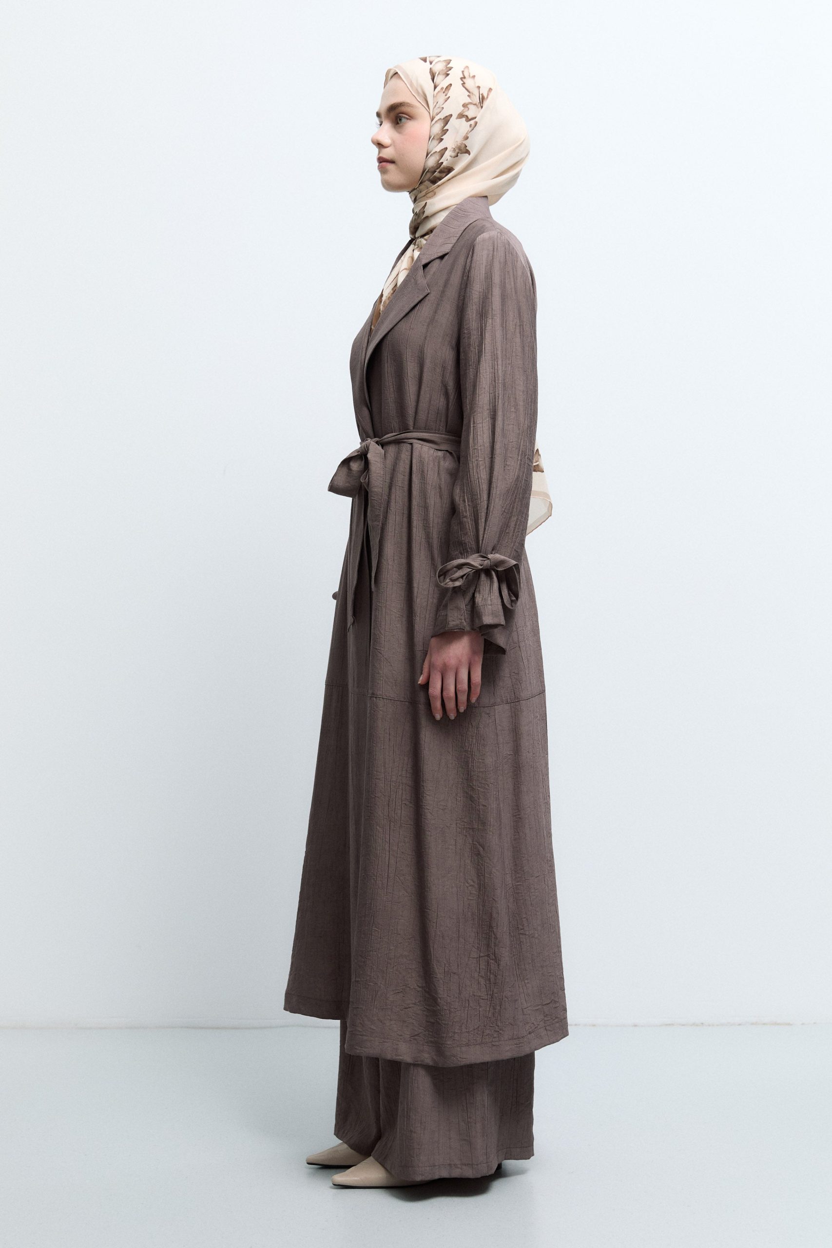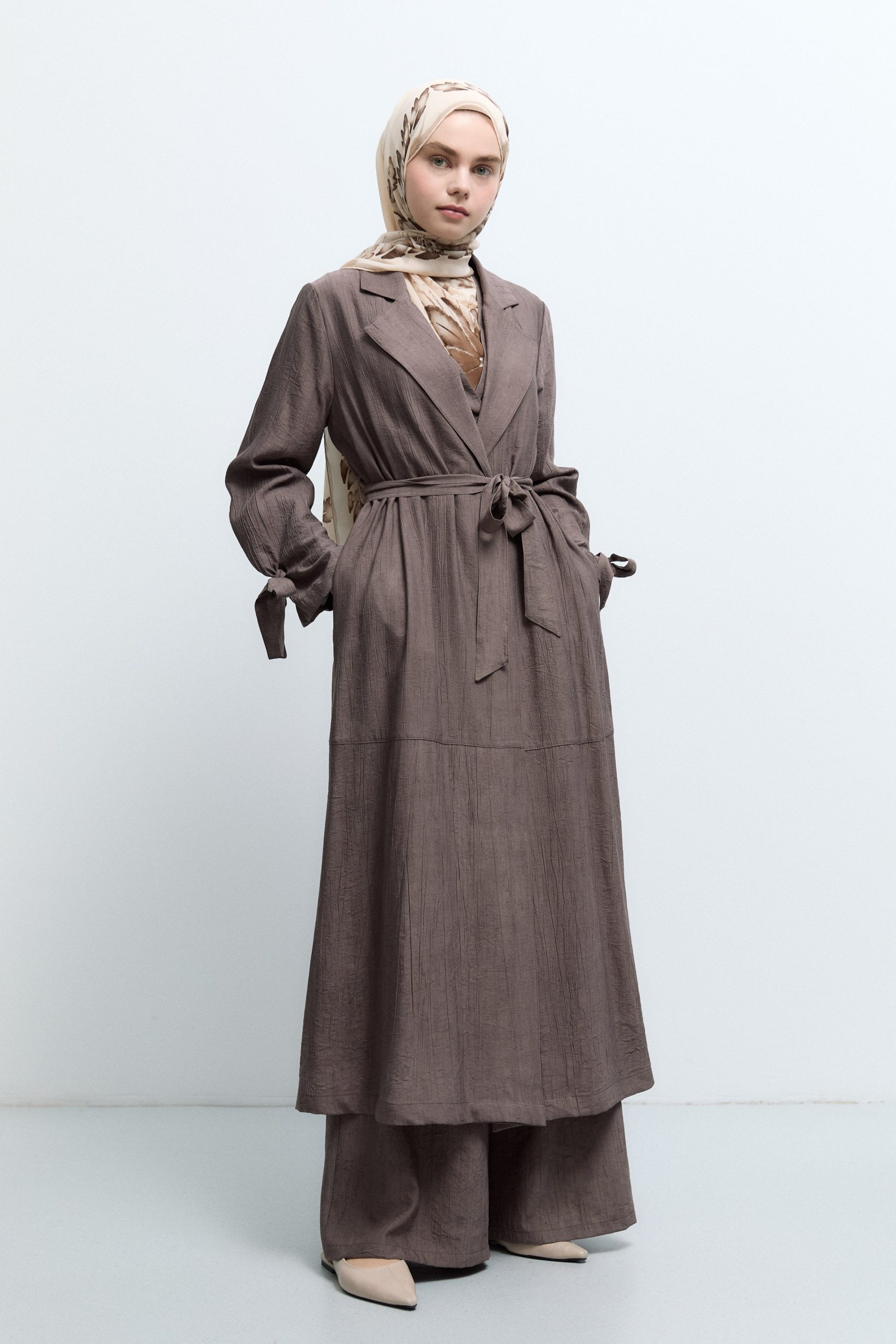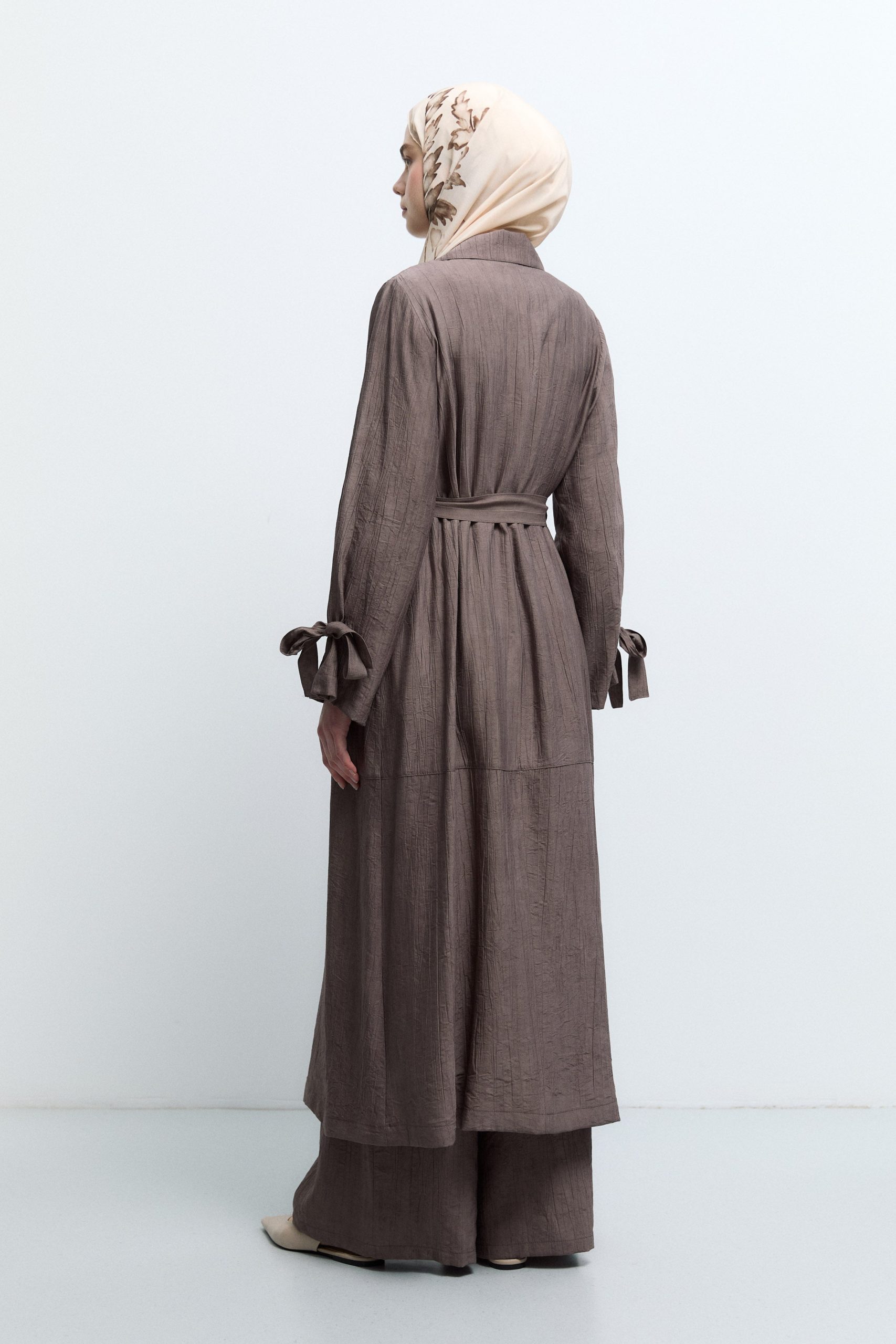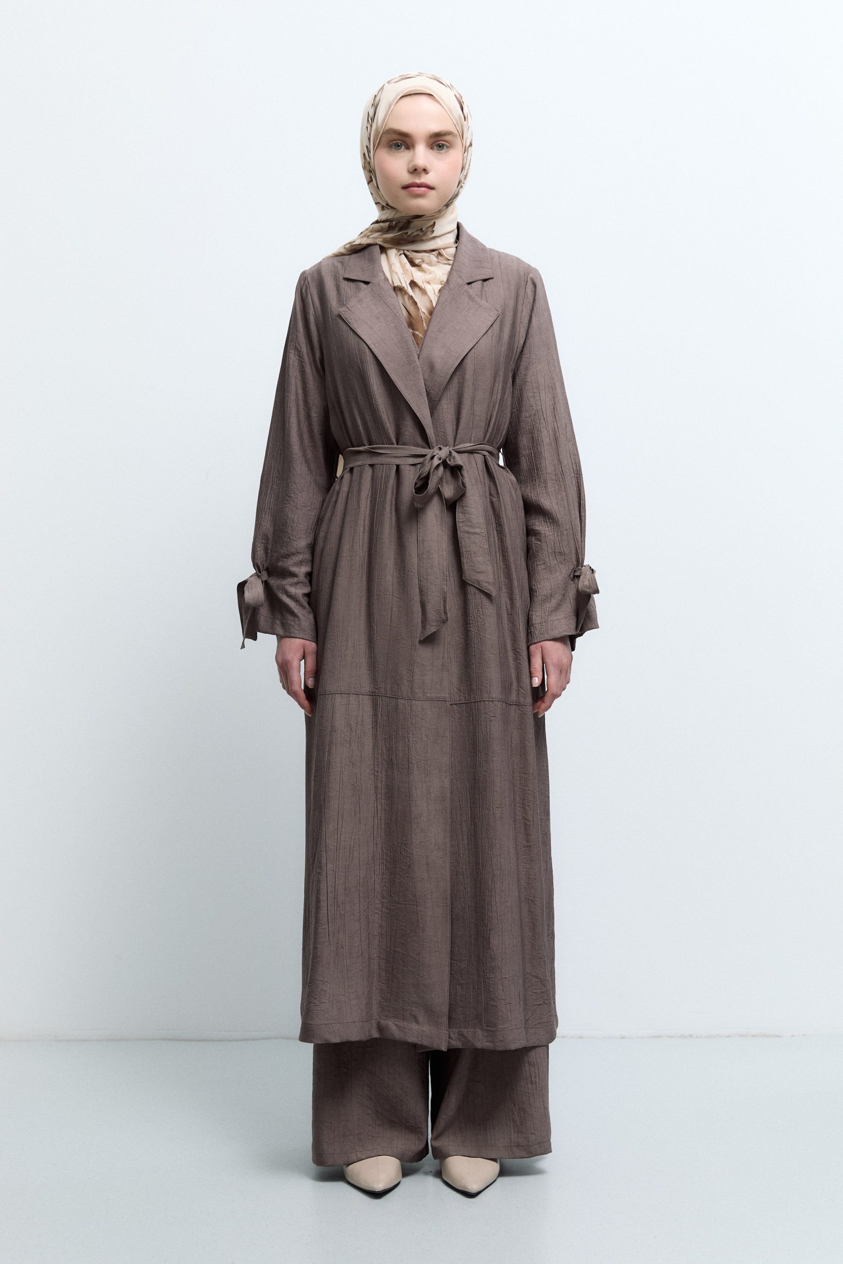 معطف ترينش بتفاصيل أربطة الأكمام – لون القهوة