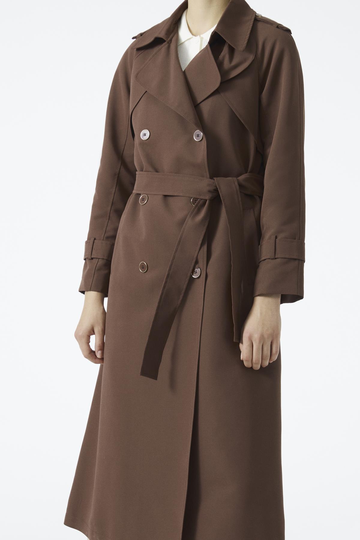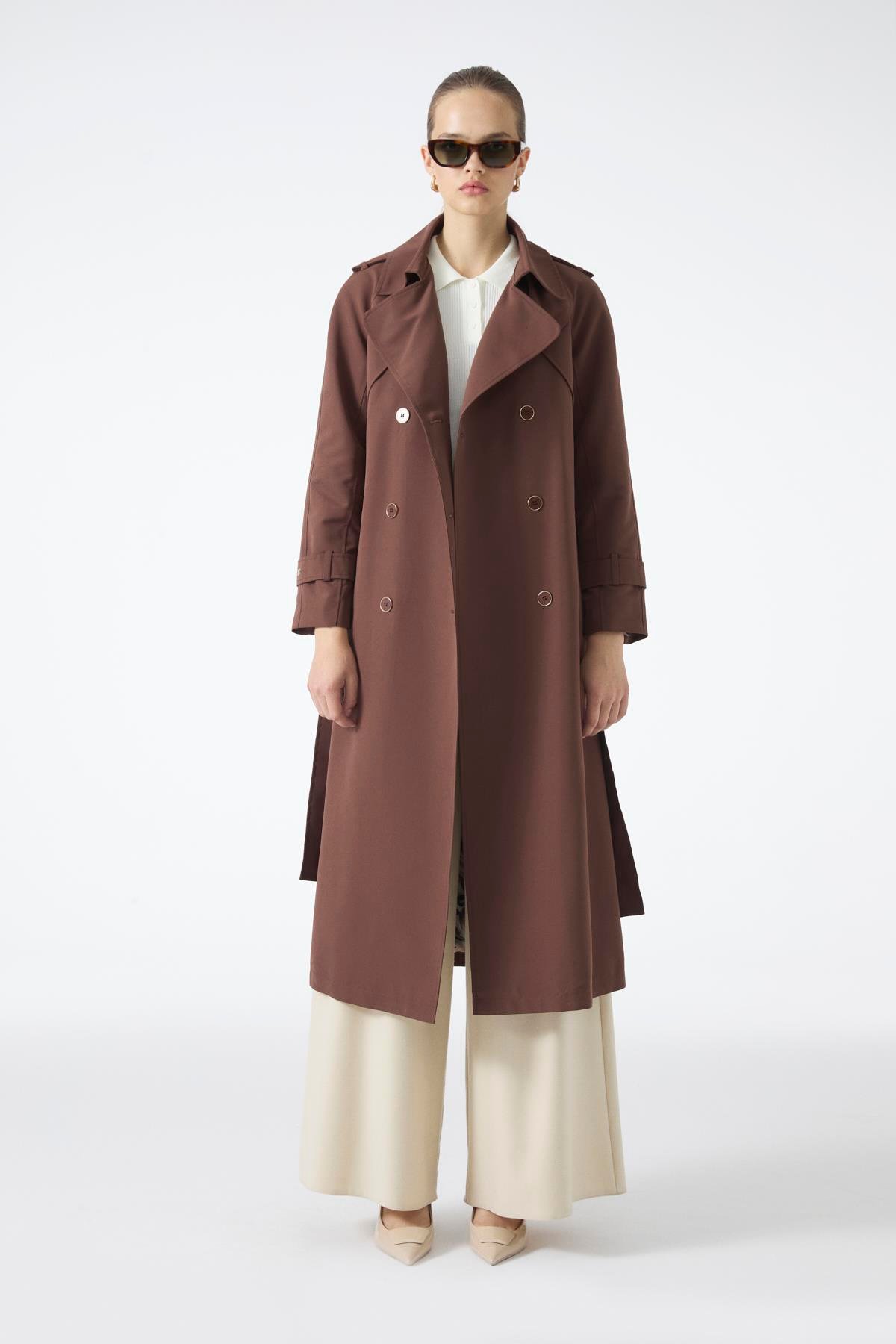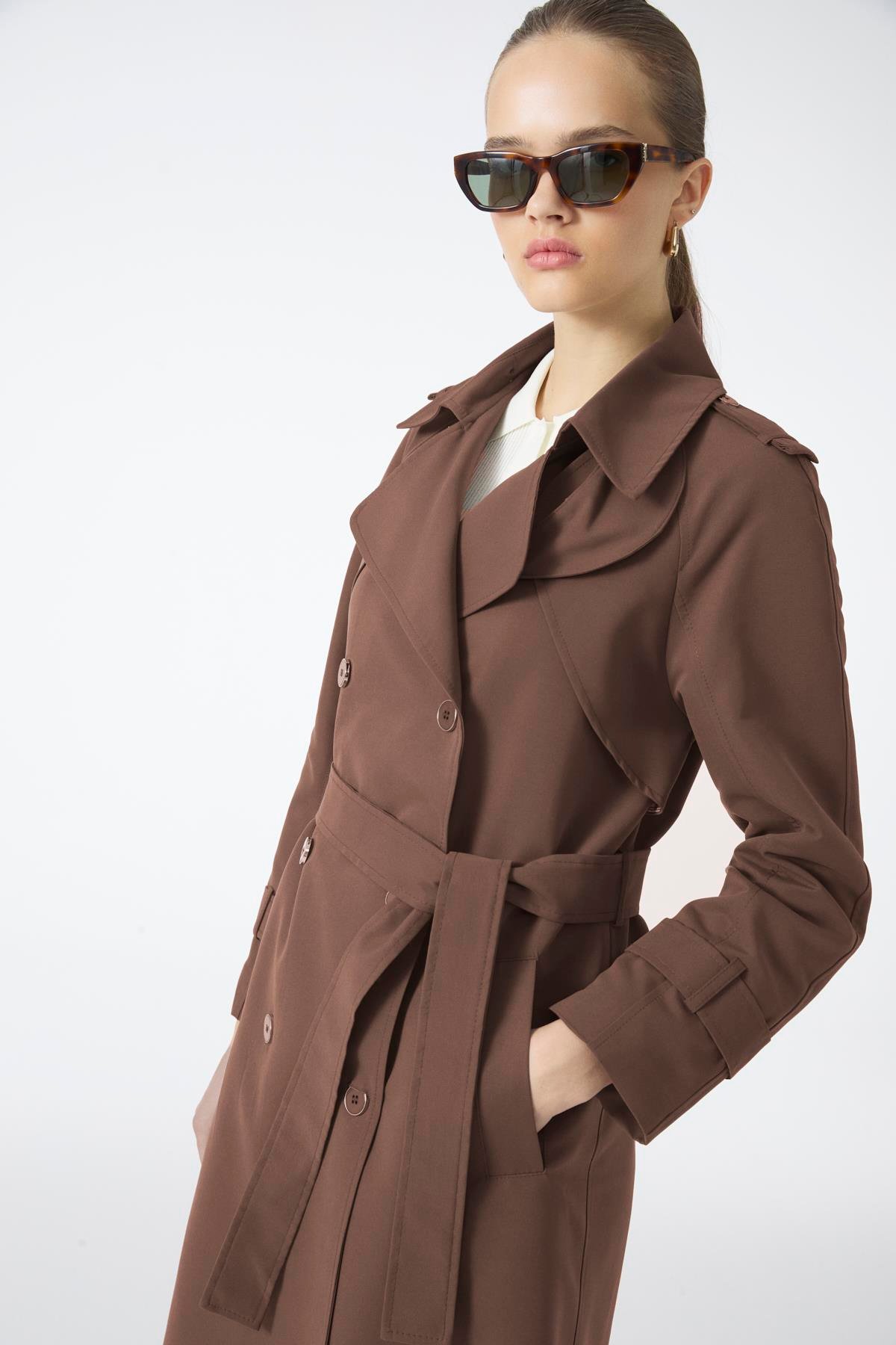 معطف ترينش بني بحزام وتفاصيل الأكتاف 13820