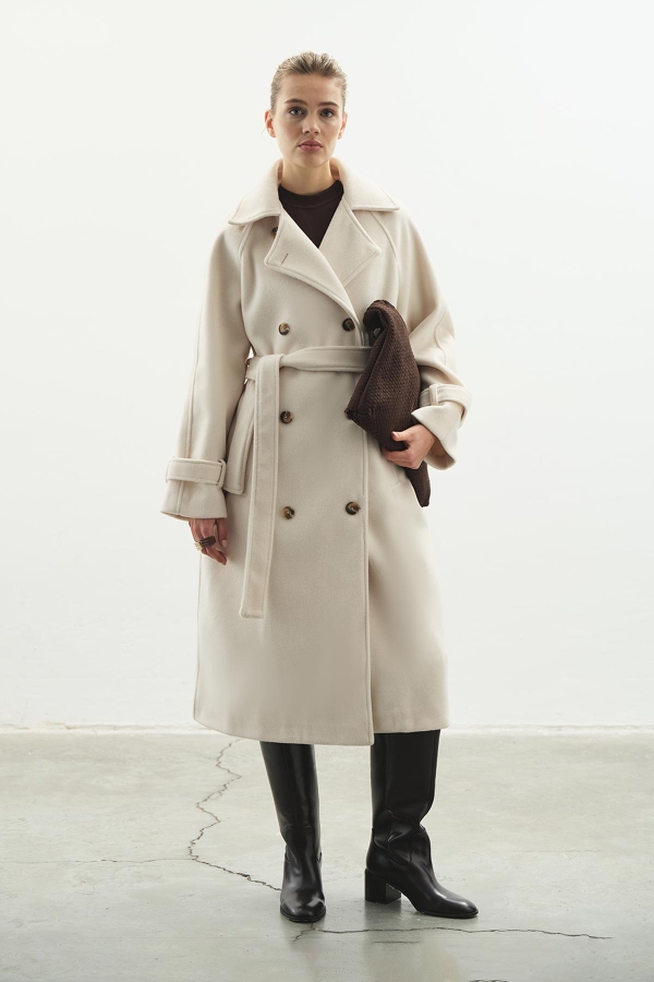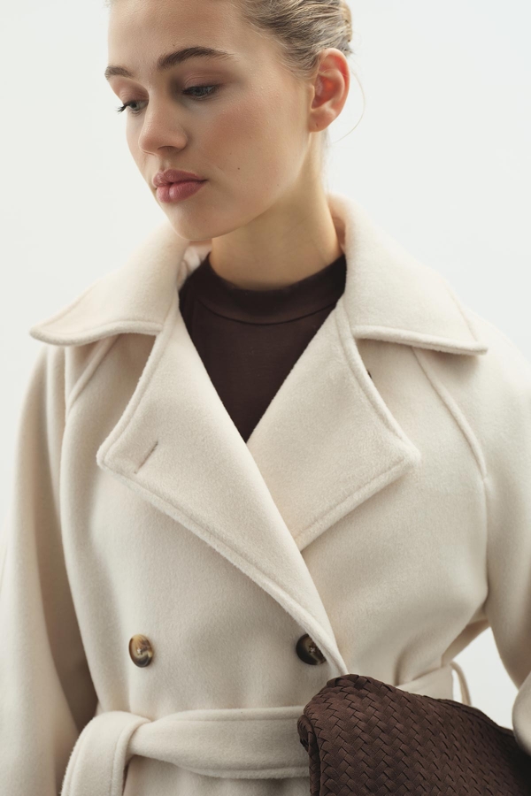 معطف فيزون ذو طوق وشاح بمظهر الكشمير