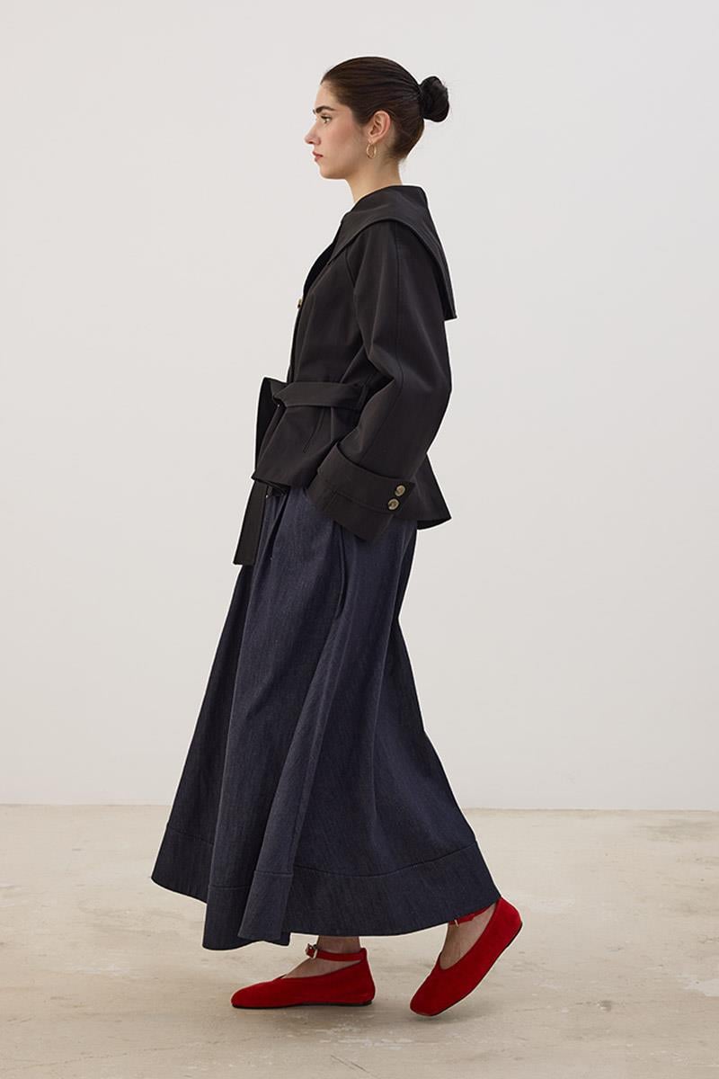 يقدم هذا المعطف المصنوع من خليط الصوف ملمسًا دافئًا وناعمًا، بينما يعمل حزام الخصر على إبراز القوام بأناقة. خطوطه النظيفة تخلق بساطة عصرية، وشكله المتدفق يضيف أناقة طبيعية ومتطورة للستايل الحضري.