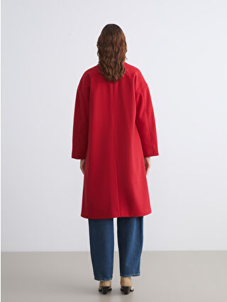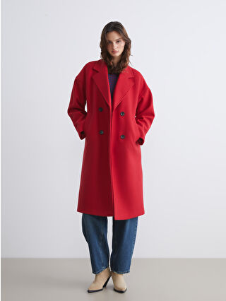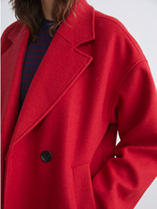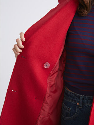 معطف ترينش نسائي باللون الأحمر مع ياقة متقاطعة