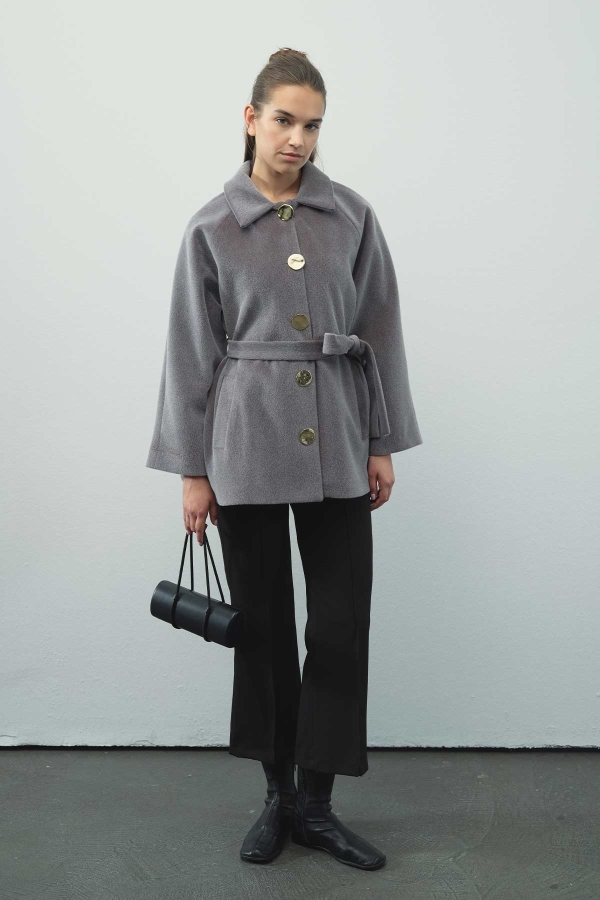 معطف جاكيت دخاني بلون الذهبي ميلينا بأزرار