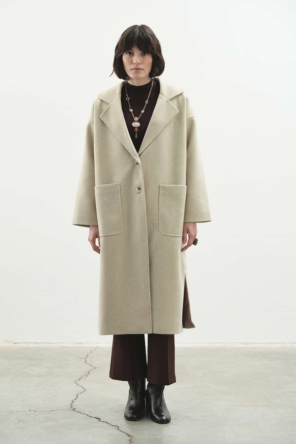 معطف حجري بتفاصيل خياطة